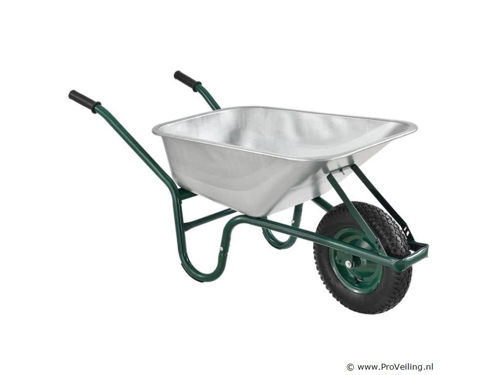 De veelzijdige tuinkruiwagen met gegalvaniseerde kuip en luchtbanden is een onmisbare transporthulp. Het is ideaal voor het gemakkelijk verwijderen van stortgoed in de tuin, stal of op de bouwplaats. Met zijn 100 liter kuip biedt hij voldoende ruimte voor allerlei soorten bulkgoederen: of het nu gaat om het snoeien van heggen, het planten van groenten, het leggen van tegels of het opruimen van de stal - de eenwielerwagen maakt stal-, renovatie- en tuinwerk gemakkelijker voor u. Technische specificaties: Materiaal bak: verzinkt plaatstaal, 0,7 mm dik Materiaal frame: staalbuis, 1,2 mm dik Materiaal handgrepen: kunststof Volume: 100L Leeg gewicht: 12,4 kg Maximale belasting: 210 kg Werkdruk banden: 2 bar Kleuren: zilver, donkergroen, zwart Afmetingen (ongeveer): Breedte: 59cm Lengte: 141cm Hoogte: 62cm Wiel: Ø 40 cm Leveringsomvang: 1 x kruiwagen 1 x instructie