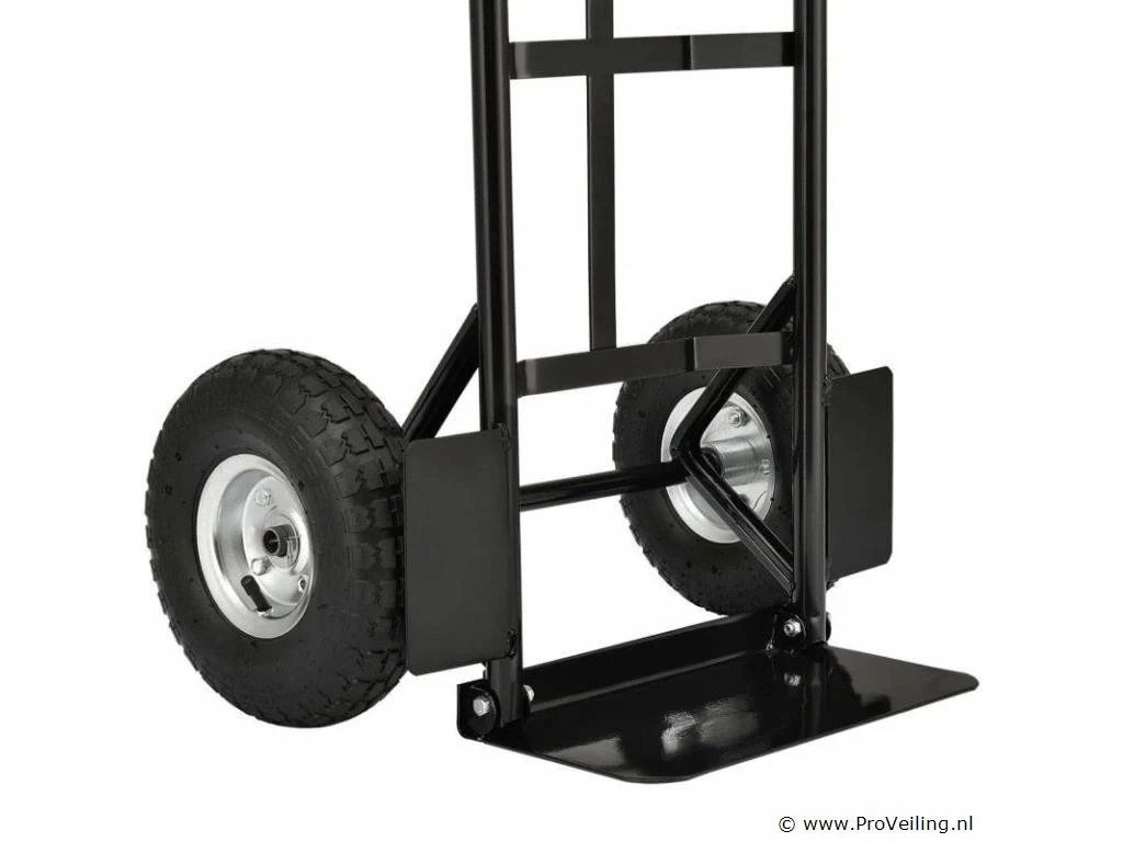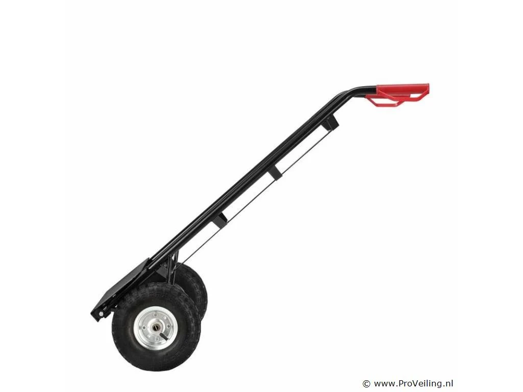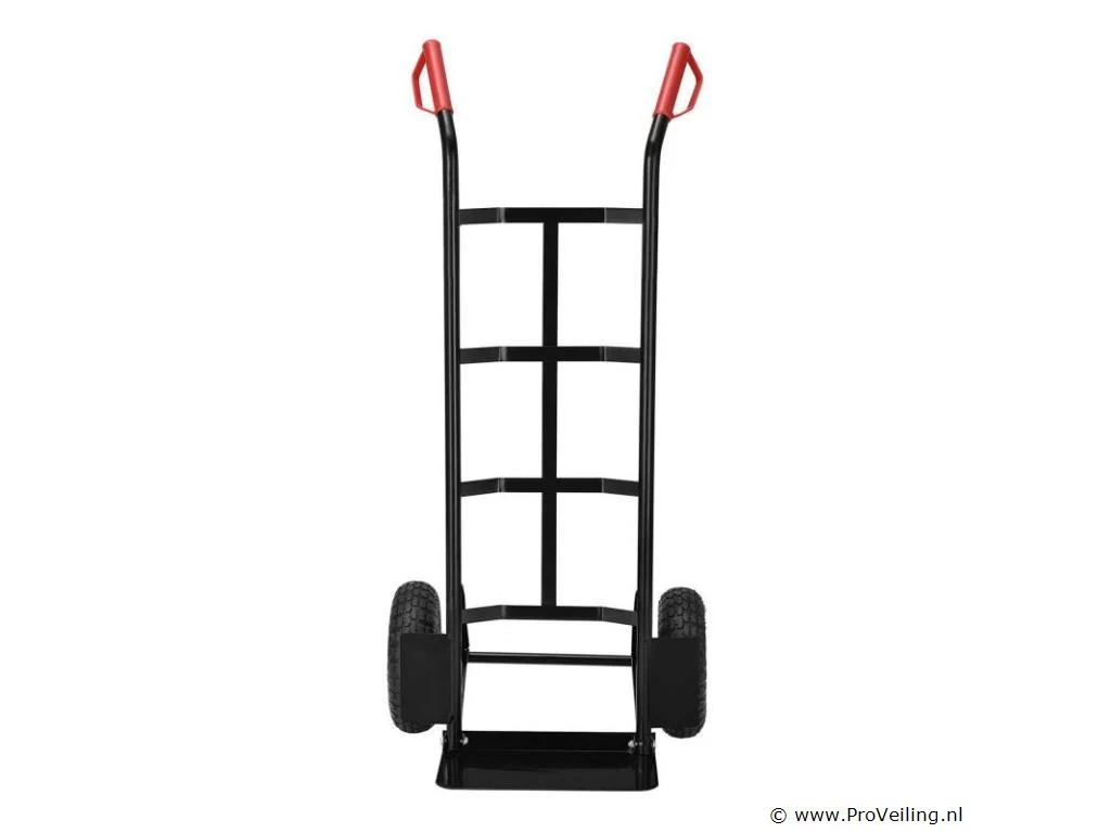 De praktische steekwagen Basic 100 kg met grote wielen en rode handvatten is de ideale hulp bij het vervoeren van zware en onhandelbare voorwerpen. Drankkratten, verhuisdozen, meubels of elektronische apparaten - met deze robuuste stalen steekwagen vervoert u alles snel en eenvoudig. De transportwagen is geschikt voor zowel binnen- als buitengebruik. Het is gemakkelijk te rangschikken. Obstakels zoals trappen of stenen worden gemakkelijk overwonnen. U bespaart veel tijd en moeite en beschermt ook uw rug. Technische specificaties: Draagvermogen: max. 100 kg Gewicht: 9kg Kleur: zwart, rood Materiaal: staal, kunststof Afmetingen (ongeveer): Hoogte: 118cm Breedte: 44cm Laadschop: 35,5 x 19 cm Leveringsomvang: 1 x steekwagen 1 x Duitstalige montagehandleiding