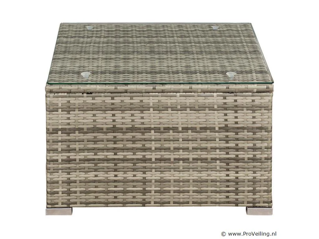 Ben je op zoek naar een comfortabele en grote loungeset voor in je tuin, terras of balkon? Met de zitgroep "Punta Cana M" verander je je buitenruimte in een stijlvolle plek om te ontspannen en je goed te voelen. Gezellige avonden met familie, vrienden of buren worden een geweldige belevenis in de buitenlucht. De unieke rotan-look in beigegrijs met grijze kussens geeft je nieuwe loungemeubel een moderne charme. Creëer je eigen oase van welzijn om te ontspannen en samen te zitten. Technische specificaties: Materiaal: Weefsel: vezels van polyrotan Frame: staal Tafelblad: glas Zitkussens: schuim Hoezen: 100% polyester Zithoogte: 37 cm Dikte zitkussen: 5 cm Dikte glasplaat: 0,5 cm Kleur: Vlecht: gemêleerd grijs Kussenslopen: donkergrijs Afmetingen (ongeveer): Bank: 178 × 69 × 65 cm (L x B x H) Tafel: 61 × 61 × 37 cm (L x B x H) Kruk: 61 × 61 × 37 cm (L x B x H) Dikte zitkussen: 5 cm Dikte glasplaat: 0,5 cm Breedte rugkussen: 54 cm Zitkruk: 60 × 60 cm Leveringsomvang: 1x tafel 1 x Bank 1 x kruk 4 x zitkussens 3 x rugkussens 1 x montagehandleiding
