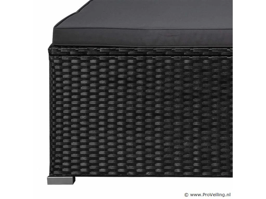 Ben je op zoek naar een comfortabele en grote loungeset voor in je tuin, terras of balkon? Met de zitgroep "Punta Cana M" verander je je buitenruimte in een stijlvolle plek om te ontspannen en je goed te voelen. Gezellige avonden met familie, vrienden of buren worden een geweldige belevenis in de buitenlucht. De unieke rotan-look in zwart met grijze kussens geeft je nieuwe loungemeubel een moderne charme. Creëer je eigen oase van welzijn om te ontspannen en samen te zitten. Technische specificaties: Materiaal: Weefsel: vezels van polyrotan Onderstel: staal Tafelblad: glas Hoezen: schuim, polyester Kleur: Vlecht: zwart Tafelblad: helder Kussenslopen: donkergrijs Afmetingen (ongeveer): Tafel: 61 × 61 × 37 cm (L x B x H) Bank: 178 × 69 × 65 cm (L x B x H) Kruk: 61 × 61 × 37 cm (L x B x H) Dikte zitkussen: 5 cm Dikte glasplaat: 0,5 cm Breedte rugkussen: 54 cm Zitkruk: 60 × 60 cm Leveringsomvang: 1x tafel 1 * Bank 1 x kruk 4 x zitkussens 3 x rugkussens 1 x montagehandleiding