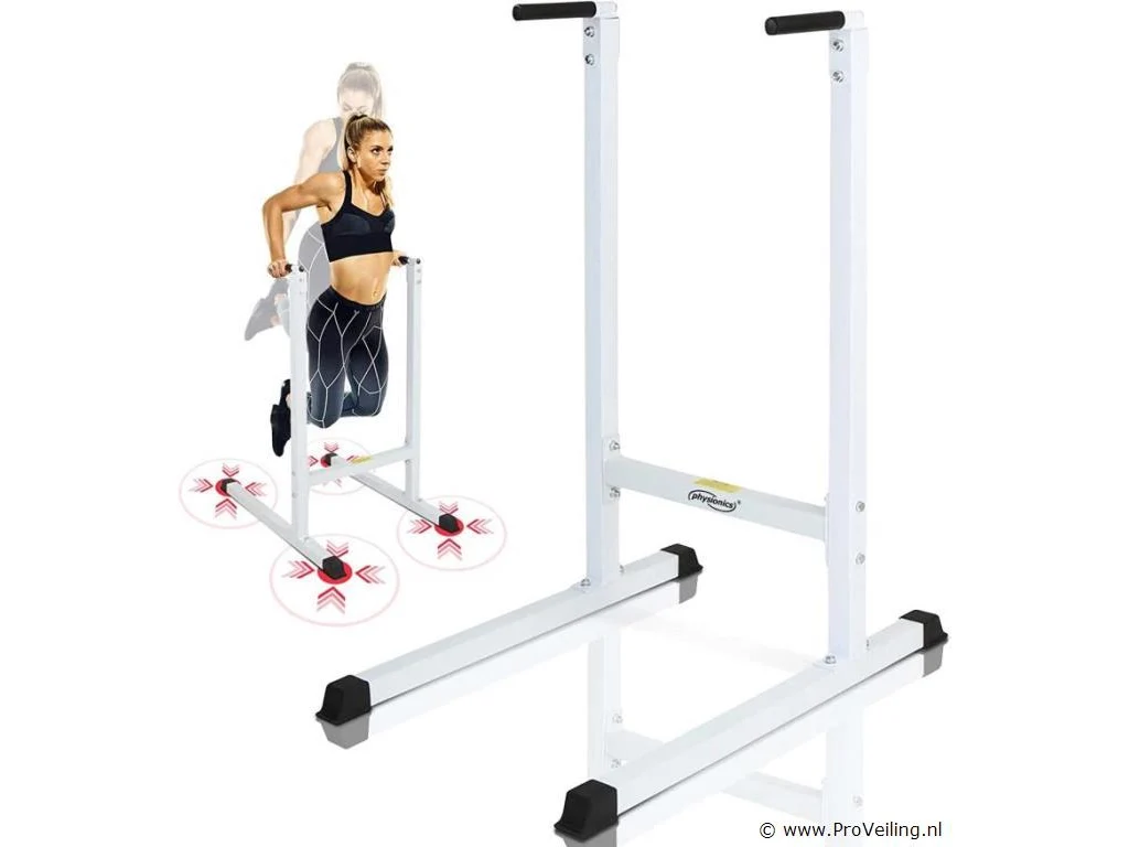 Kom in vorm met deze dipstandaard. Biceps, triceps, rug en buikspieren - uw spieren groeien met het dipstation van wit gelakt metaal en regelmatige training. Trek jezelf omhoog aan de metalen staven met gewatteerde handgrepen, herhaal dit keer op keer en voeg toe aan je dagelijkse routine. Het dipperstation is zeer robuust, aangezien het belastbaar is tot maximaal ca. 120 kg. Dip stand helpt bij body steeling geverfd metaal met gevoerde handgrepen ideaal voor professionals en beginners voor biceps-, triceps-, buik- en rugtraining Technische specificaties Afmetingen (L/B/H): ca. 98/65/125 cm Gewicht: ca. 11,5 kg max. belasting: ca. 120 kg Materiaal: gelakt metaal Kleur: wit, zwart Leveringsomvang: 1 x dipstandaard BHTN12 als bouwpakket voor zelfmontage 1 x meertalige montagehandleiding (DE/EN/FR)