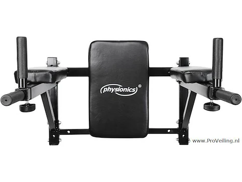 Een wasbord in slechts enkele weken zonder geld uit te geven in dure sportscholen - met je persoonlijke dip-station blijft dit geen droom, maar wordt het werkelijkheid! Slechts een paar minuten training per dag is voldoende om je doel te bereiken. Het praktische en ruimtebesparende dip-station kan eenvoudig aan de muur worden bevestigd. Het apparaat is flexibel inzetbaar en kan afwisselend dip-oefeningen en beenheffen worden getraind. Als beenlift kunnen de buikspieren effectief worden getraind, terwijl het gebruik als dip-station de ontwikkeling van borst-, schouder- en tricepsspieren bevordert. Technische informatie: Afmetingen (b x h x d): ca. 68x 47x 64- 74cm Diameter greep: 25 mm. Horizontale greep: 16,5 cm. Verticale handgreep: 13 cm. Vierkante stalen buis: 3,8 x 3,8 cm. Armvulling: 29,5 x 12,5 cm. Rugkussen: 40 x 24 cm. Maximale belasting: ca. 200 kg. Gewicht: ca. 7,2 kg. Materiaal: staal, kunststof, pvc, polywood, schuim. Samenstelling textiel: 100% polyurethaan. Kleur: zwart. Inhoud levering: 1 x dip-station BHTN08 als bouwpakket voor zelfmontage. 1 x meertalige handleiding (DE/EN/ES/FR/IT).