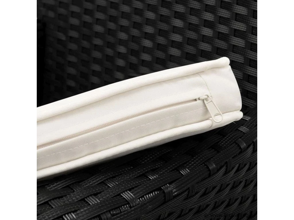 Technische specificaties: Materiaal stoel: polyrotan & metaal Materiaal tafel: polyrotan, metaal & glas Materiaal pads: polyester & schuim Wasbare hoezen: ja Weerbestendig: ja Kleur meubel: zwart Kleur zitkussens: crème Maximaal gewicht: 160 kg Afmetingen (ongeveer): Afmetingen stoel: 58 x 58 x 85 cm (lengte x breedte x hoogte) Stoelzitting: 45 x 45 cm Zithoogte: 41 cm Hoogte tafel: 73 cm Diameter tafel: 60 cm