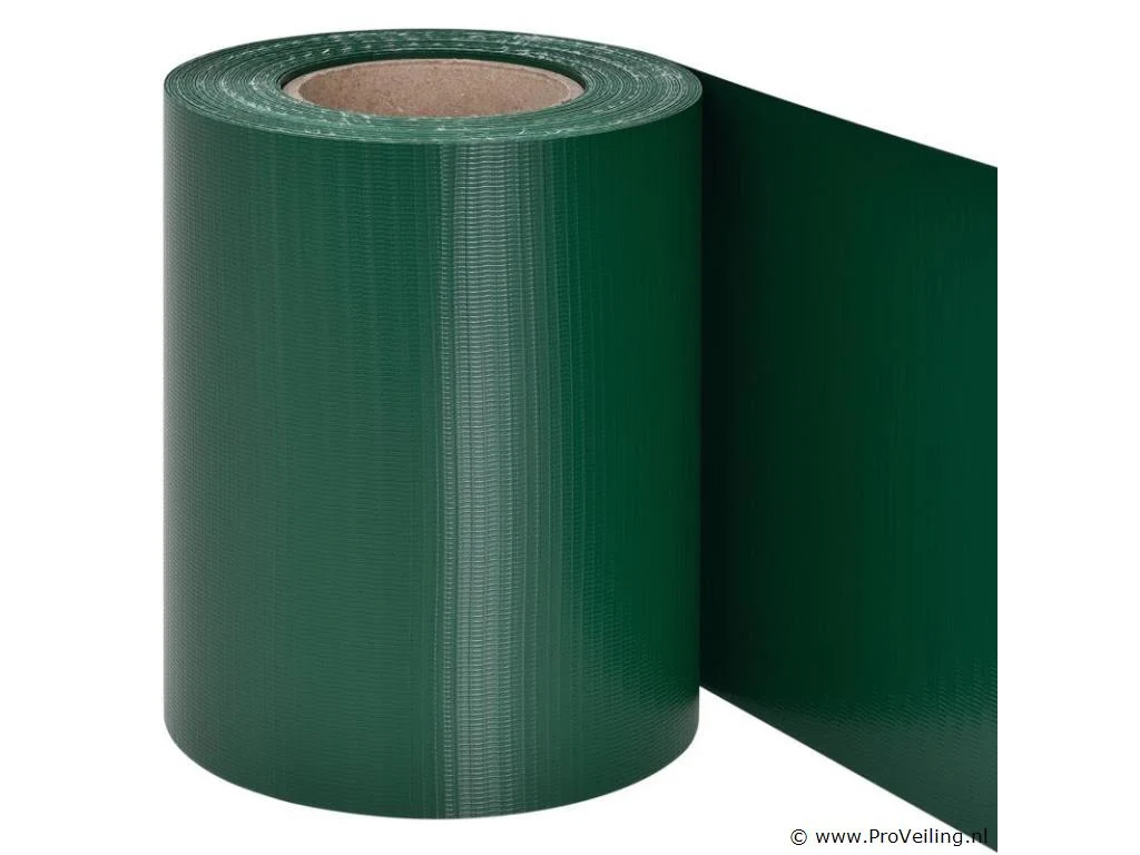 Technische specificaties: Kleur groen Aantal montageklemmen: 120 Materiaal: PVC PVC-kwaliteit: 450 g / m Temperatuurbereik: -30 ° C tot +70 ° C UV- en weerbestendig: Ja Afmetingen (ongeveer): Lengte: 4 x 35m Hoogte: 19cm