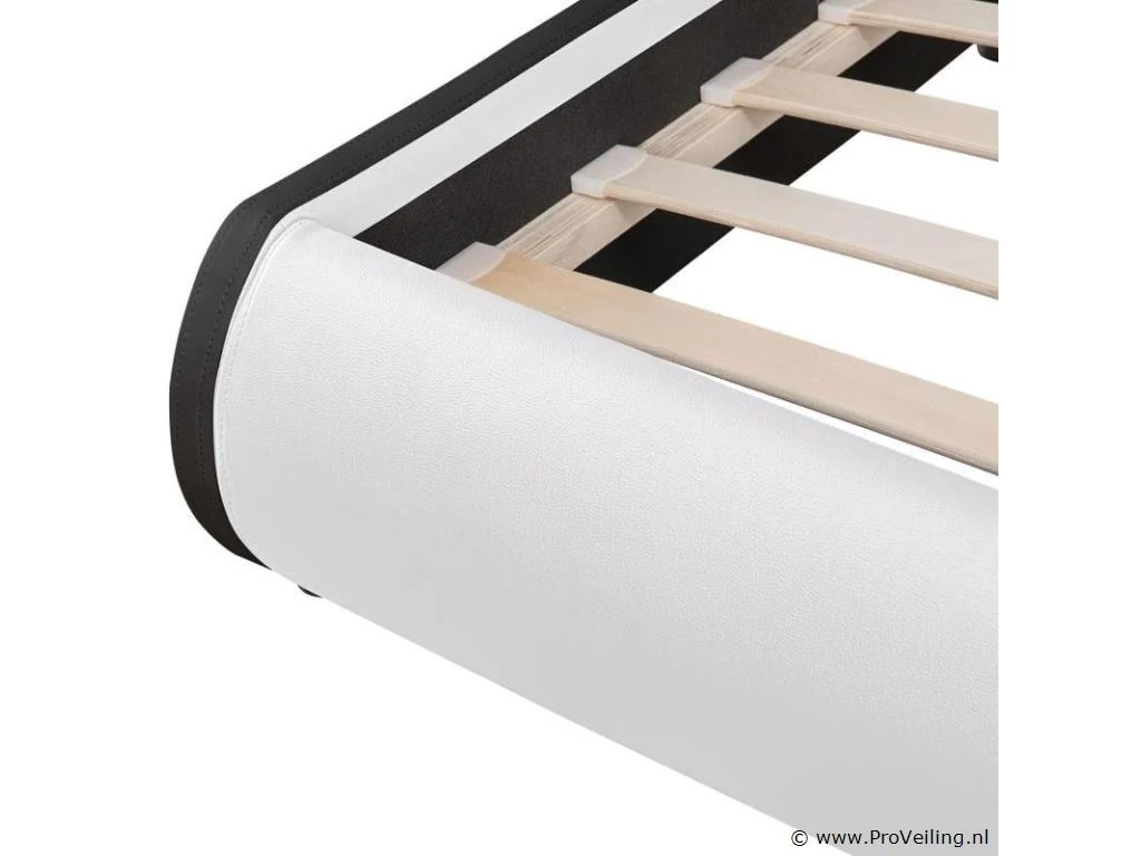 Slaapcomfort is... wakker worden en ontdekken dat het geen droom was. Want het gestoffeerde bed Sevilla (140x200 cm, wit) is echt heerlijk comfortabel en robuust tegelijk. De stabiele lattenbodem biedt de ideale basis voor een gezonde en rustgevende slaap. Dankzij de gecapitonneerde rugleuning kun je ook heerlijk ontspannen tijdens het lezen of tv kijken. Ook biedt het ruimte voor chique led-verlichting die je slaapkamer baadt in sfeervolle kleuren. De moderne uitrusting en het stijlvolle design overtuigen zowel jongeren als volwassenen. Door zijn middelgrote formaat past hij ook perfect als tweepersoonsbed in kleine slaapkamers of logeerkamers. Technische specificaties: Producttype: bedframe Kleur wit Stijl: Modern Materiaal frame: MDF hout, metaal Materiaal bekleding: kunstleer (84% PVC, 16% polyester) Verlichting: LED-strip met afstandsbediening Lichtkleur: 16 verschillende kleuren Vermogen: 14.3W Lichtstroom: 234 lm Kleurtemperatuur: 2000 - 10000K Afmetingen (ongeveer): Afmetingen: 149,5 × 217 cm Ligoppervlak: 140 × 200 cm Hoogte hoofdbord: 74 cm Dikte hoofdbord: 7,5 cm LED-balk: 9 x 140,5 cm Hoogte zijpanelen: 31,5 cm Framedikte zijkanten: 4 cm Hoogte voeteneinde: 27,5 cm Framedikte voeteneinde: 8,5 cm Voeten: 4 cm Opmerkingen over de lichtbron: Het product bevat LED-verlichting. De meegeleverde LED-verlichting is alleen bedoeld voor scène-/accentverlichting en is niet geschikt voor andere toepassingen. De meegeleverde lampen zijn niet verwisselbaar, maar verwijderbaar. De meegeleverde led-verlichting is via IR-afstandsbediening in te stellen en te dimmen. De meegeleverde LED-verlichting moet worden verwijderd voor verwijdering volgens de richtlijn voor afgedankte elektrische en elektronische apparatuur en ElektroG en afzonderlijk worden afgevoerd. Leveringsomvang: 1 x gestoffeerd bed 1 x lattenbodem 1 x afstandsbediening 1 x instructie Let op: Het matras is niet inbegrepen. U ontvangt het product goed verpakt als bouwpakket voor zelfmontage per pakketdienst. Dit artikel bestaat uit 2 dozen, het kan logistiek voorkomen dat het in meerdere dagen geleverd wordt. Onderdelen kunnen zich in het hoofdbord bevinden.