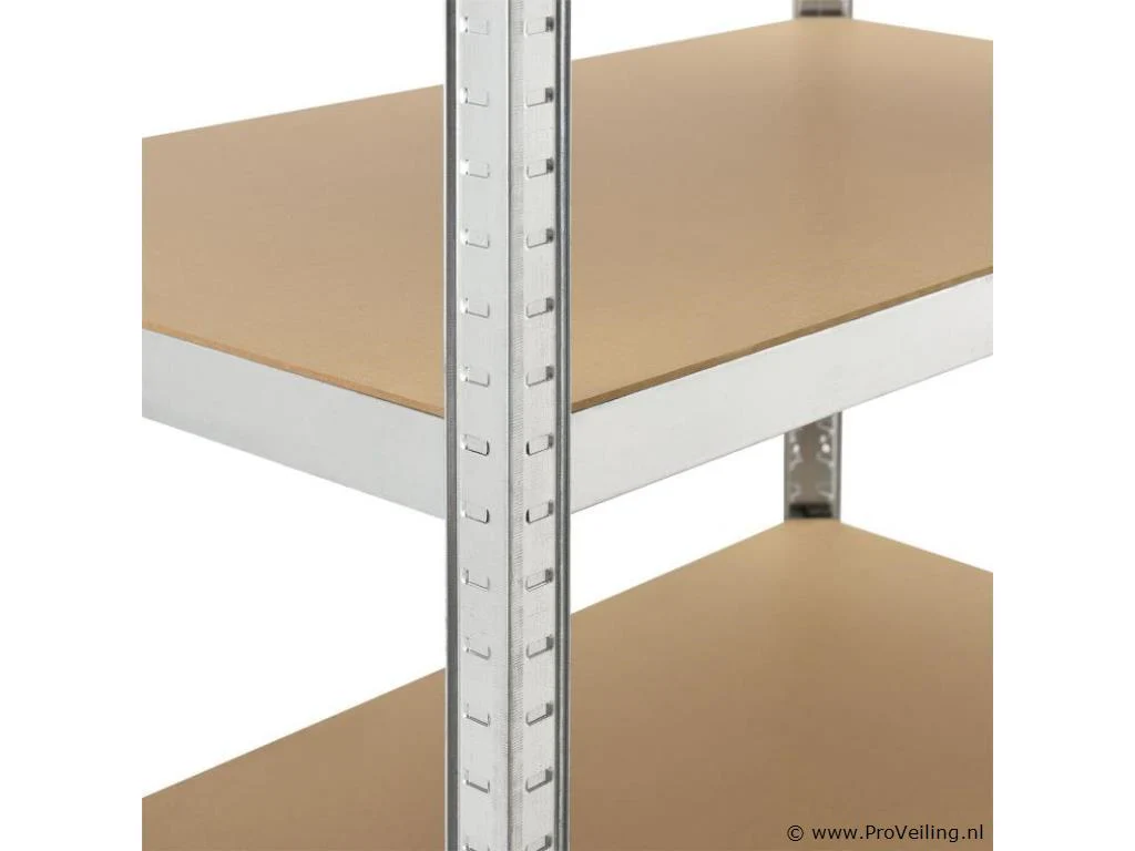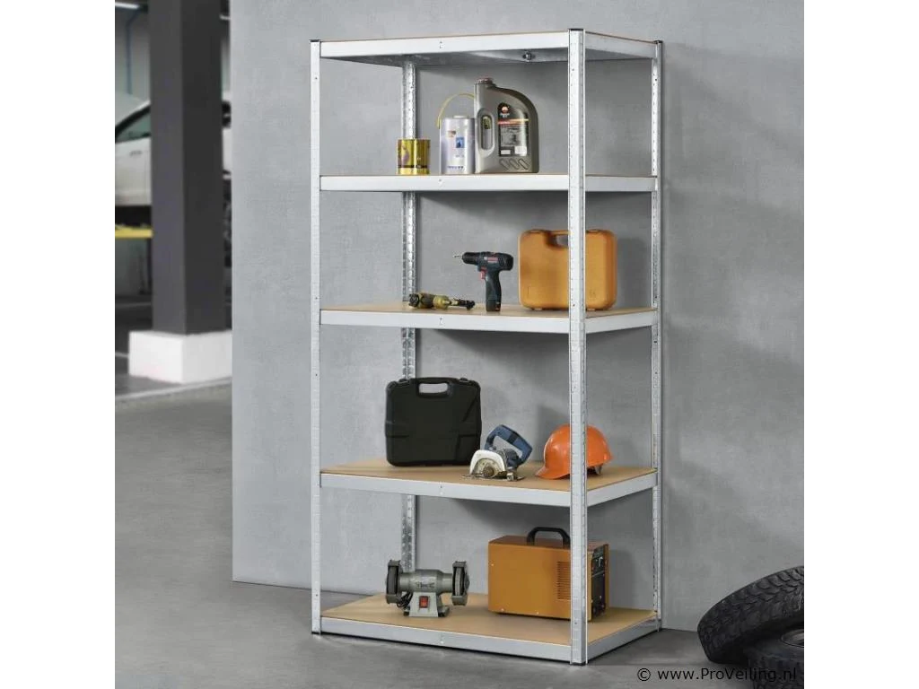 Het praktische opbergrek Basic 200 x 100 x 60 cm (zilver) is de perfecte aanvulling voor kelder, garage, werkplaats, berging en andere woonruimtes. De heavy-duty plank is gemaakt van gegalvaniseerd metaal. Met in totaal 5 planken biedt het stabiele insteekrek veel ruimte voor het overzichtelijk en overzichtelijk opbergen van gereedschap, tuinaccessoires, benodigdheden en andere spullen. Kunststof voetjes beschermen je vloer tegen lelijke krassen. Technische specificaties: Materiaal frame: metaal, verzinkt Materiaal planken: 100% hout (MDF) Materiaal voetjes: kunststof zilver Aantal planken zwaar rek: 5 Maximaal draagvermogen per plank: 175 kg Maximaal draagvermogen van heavy-duty legborden: 875 kg Aantal kruisschoren: 5 Aantal voeten: 8 Afmetingen (ongeveer): Hoogte: 200 cm Breedte: 100cm Diepte: 60cm MDF-plaat: 4 mm Leveringsomvang: 1 × opbergrek 5 × plank 1 × montage-instructies