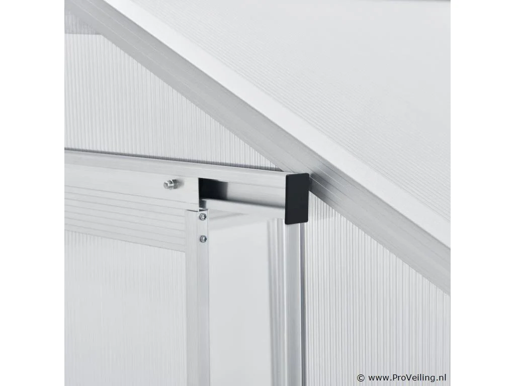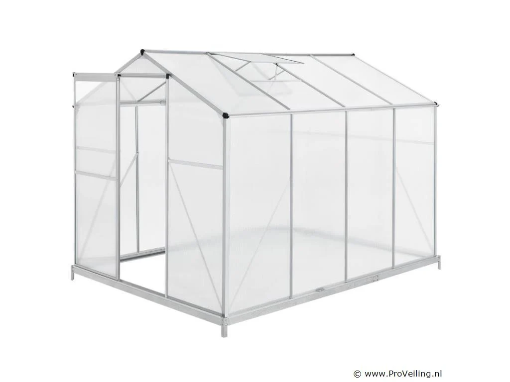 Heb je altijd al je eigen groente- of kruidenbed in je tuin willen creëren voor het kweken van tomaten, komkommers, kruiden of bloemen? Dan is deze aluminium serre met fundering en lichtkoepel de juiste keuze! De kas van 190 × 253 cm is te gebruiken als koelkas, tomatenhuis, plantenhuis of tuinhuisje. Met een vloeroppervlak van 4,75 m² biedt hij ook voldoende ruimte voor het kweken van groenten en fruit en voor het overwinteren van planten. Ideaal voor gepassioneerde hobbytuiniers. Technische specificaties: Materiaal broeikas: aluminium, polycarbonaat Materiaal fundering: staal, verzinkt Kleur lijst: zilver Kleur dubbelwandige platen: transparant Dikte van hollekamerbaanplaten: 4 mm Vloeroppervlakte: 4,75 m² Deur: 1 schuifdeur Ramen: 1 dakraam Kas: gegevensblad om te downloaden Afmetingen (ongeveer): Voetafdruk: 190 × 253 Paginahoogte: 149 Nokhoogte: 195 Voetenfundament: 7 Afmeting deur: 62 × 164 Afmeting raam: 51 x 59 Leveringsomvang: 1 × broeikas 1 × montage-instructies
