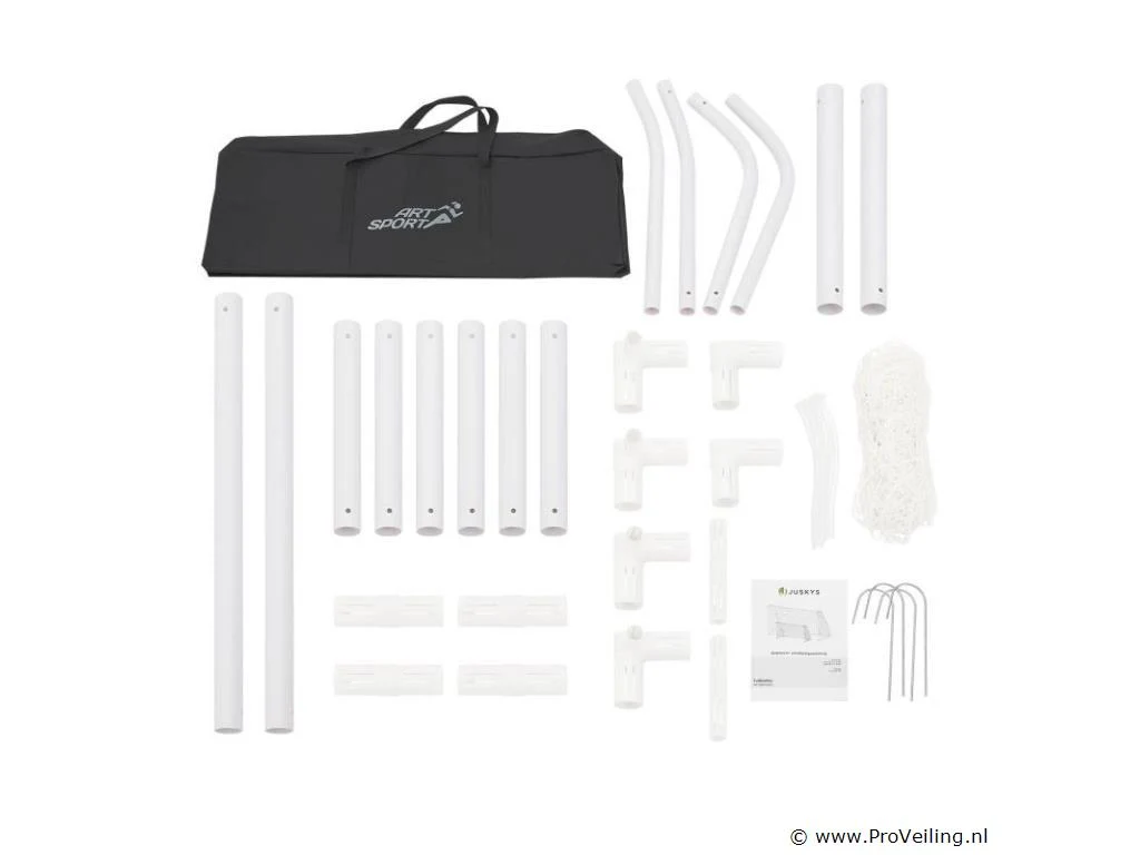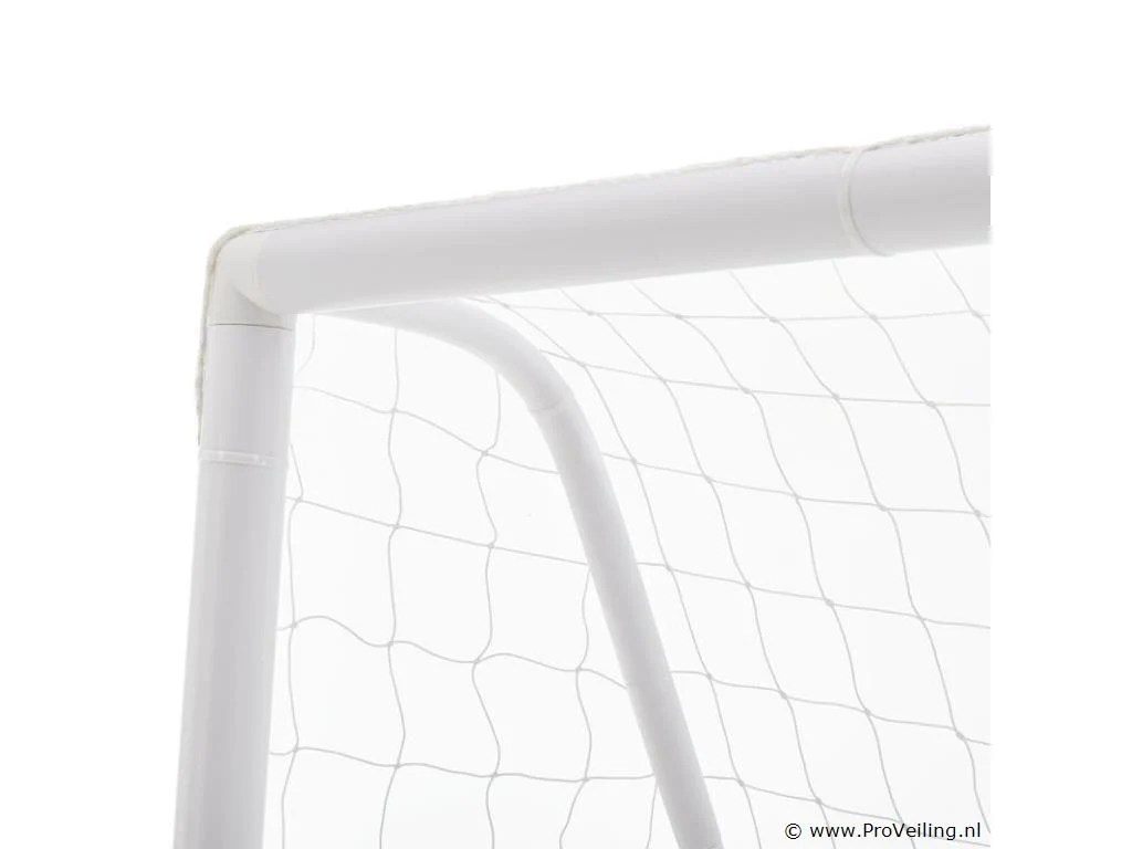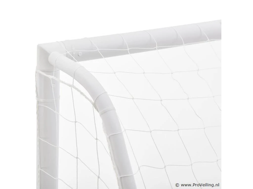 Doelpunten scoren als een pro in je eigen tuin - deze droom wordt mogelijk gemaakt door de 180 x 120 cm voetbalgoal met een praktisch kliksysteem. Gemaakt van hoogwaardig hard PVC, is het doelframe robuust tegen lat- en paalklappen en bovendien verrassend licht. De meegeleverde grondankers zorgen voor een veilige stand, zelfs bij harde stoten of wind. Door het ingenieuze insteeksysteem kan het doel snel worden gemonteerd en gedemonteerd. Dankzij de praktische draagtas vervoer je de set met slechts één hand. Het robuuste net van weerbestendig polyurethaan zorgt voor de professionele uitstraling. Technische specificaties: Materiaal frame: polyvinylchloride (hard PVC) Netmateriaal: polyurethaan Materiaal grondanker: staal (verzinkt) Materiaal draagtas: 600D nylon Kleur poort: wit Netkleur: wit Kleur draagtas: zwart Afmetingen (ongeveer): Totale afmetingen: 182 x 80 x 120 cm (BxDxH) Diameter buizen: Ø 68 mm; Ø 40mm Maaswijdte net: 10 x 10 cm Afmetingen draagtas: 106 x 16 x 36 cm (BxDxH) Leveringsomvang: 1 × doel 1 × gaas 1 × draagtas 4 x grondankers 18 x Kabelbinders 1 × montage-instructies