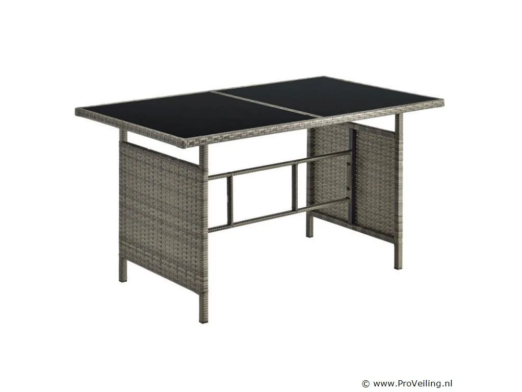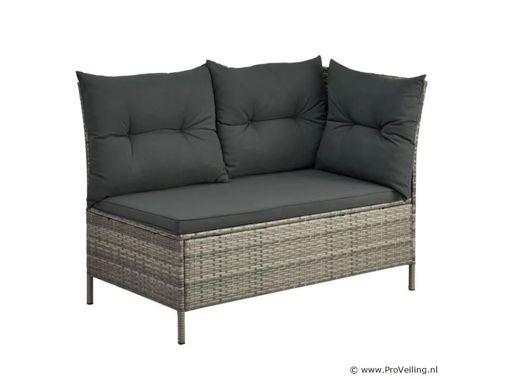 Met de Manacor polyrattan loungeset verander je je tuin, terras of balkon in een stijlvolle plek om te relaxen en je goed te voelen. De grote tuinlounge met een bank, 2 krukken en een tafel is geschikt voor maximaal 7 personen. Zachte zit- en rugkussens zorgen voor een comfortabele zitervaring. De grote eettafel is beschikbaar om te dineren of bordspellen. Gezellige avonden met familie, vrienden of buren worden een geweldige belevenis in de buitenlucht. De unieke rotan-look geeft de tuinmeubelset een moderne charme. Technische specificaties: Materiaal frame: staal, gepoedercoat Materiaal gaas: polyrotan Materiaal tafelblad: veiligheidsglas Materiaal zitkussen: 100% schuim Materiaal hoezen: 100% polyester Vlechtkleur: grijs gemêleerd Kleur hoezen: donkergrijs Dikte glasplaten: 5 mm Aantal zitkussens: 5 Aantal rugkussens: 7 Dikte kussen: 5 cm Omslagen: 180g/m2 Afmetingen (ongeveer): Bankelement links: 105 x 62 x 80 cm Rechter bankelement: 105 x 62 x 80 cm Centraal bankelement: 115 x 62 x 80 cm Kruk: 40 x 40 x 40 cm Zithoogte kruk & bank: 40 cm Tafel: 116 x 66 x 65 cm Een mededeling: De hoezen van de zitkussens kunnen eraf geritst en gewassen worden. De hoezen van de rugkussens zijn echter niet afneembaar (hoes aan het kussen genaaid) en dus niet wasbaar. Ze hebben een ritssluiting, maar die heeft geen functie. Alleen de hoezen van het zitkussen zijn wasbaar. Ververs de impregnering na het wassen. Het hele kussen mag niet in de wasmachine, anders zal de vulling eronder lijden. Leveringsomvang: 1 × hoekbank 2 × krukken 1 × tafel 2 × glasplaten 5 × zitkussens 7 × rugkussens 1 × Instructie