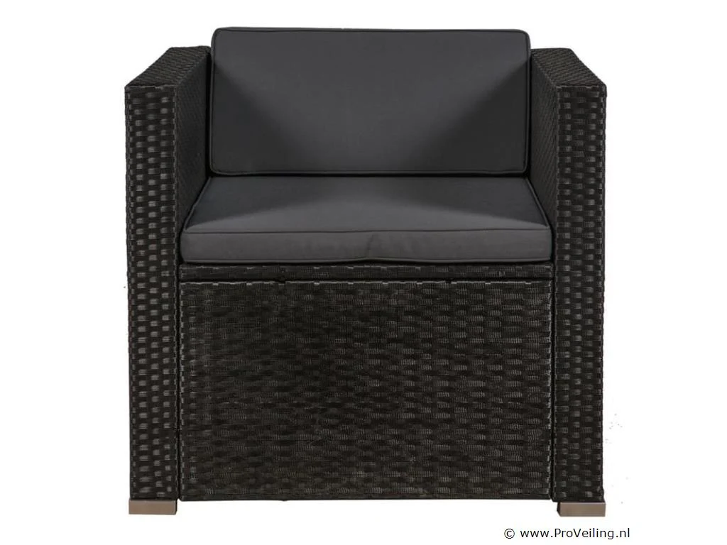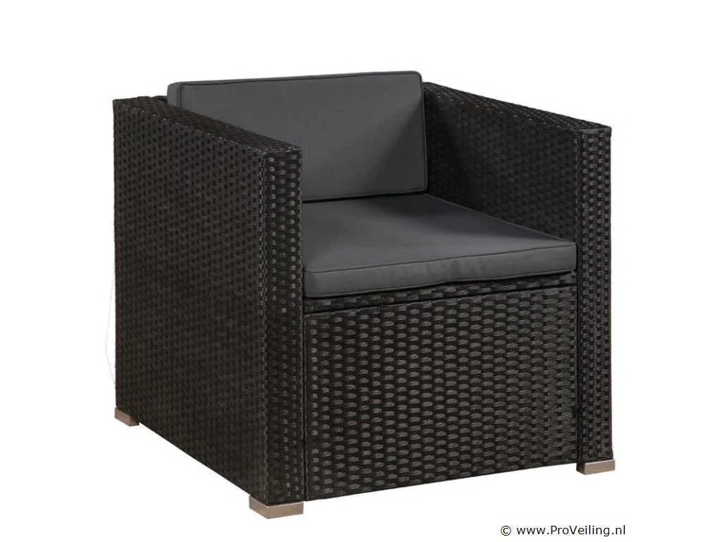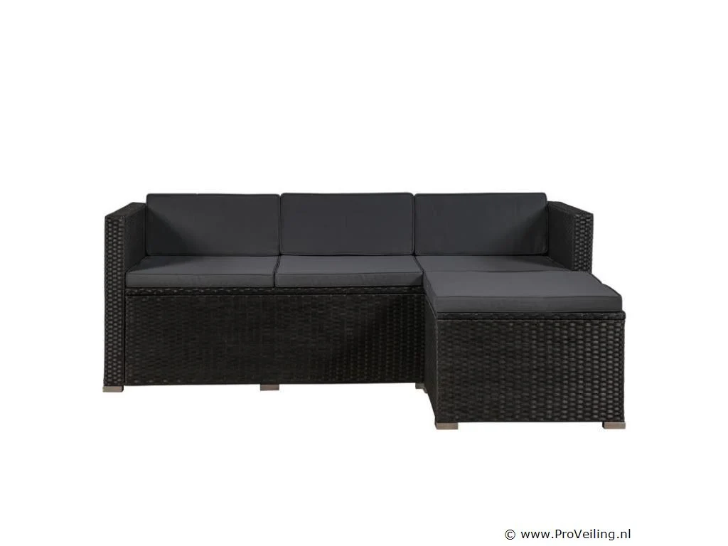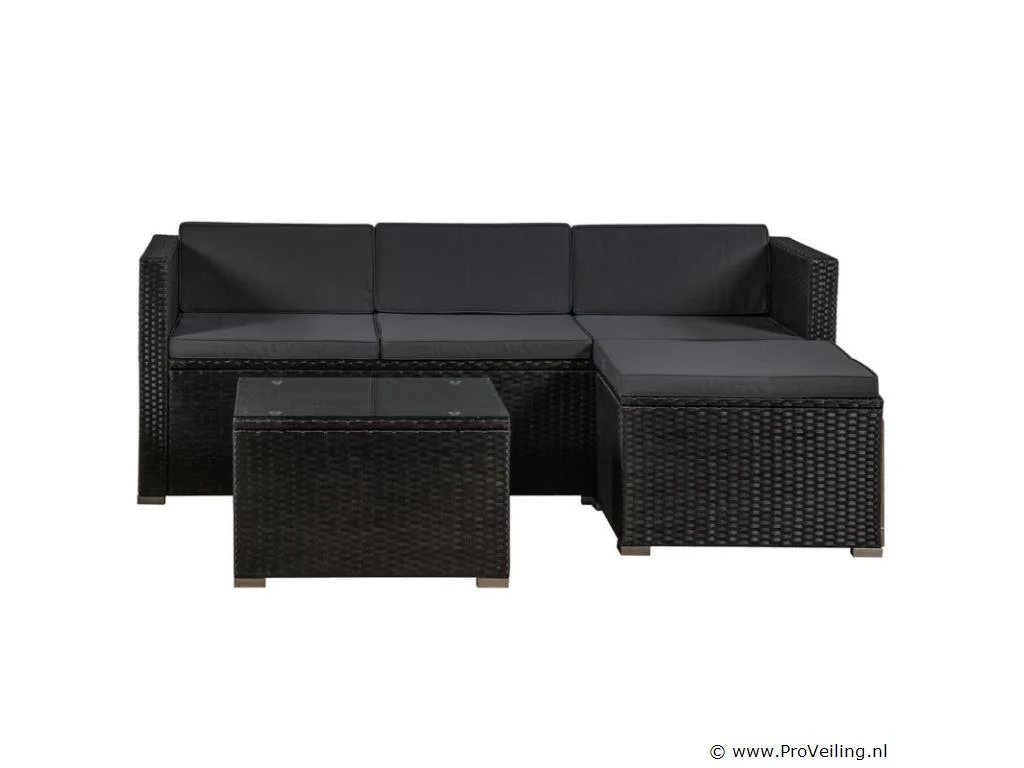 Ben je op zoek naar een comfortabele en grote loungeset voor in je tuin, terras of balkon? Met de zitset "Punta Cana L" verander je je buitenruimte in een stijlvolle plek om te ontspannen en je goed te voelen. Gezellige avonden met familie, vrienden of buren worden een belevenis in de buitenlucht. De unieke rotan look in zwart met grijze vulling geeft je nieuwe loungemeubel een moderne charme. Creëer je eigen oase van welzijn om te ontspannen en samen te zitten. Technische specificaties: Materiaal: Weefsel: polyrotan vezels Basis: staal Tafelblad: glas Hoezen: schuim, polyester Kleur: Vlecht: zwart Tafelblad: helder Kussenslopen: donkergrijs Afmetingen (ongeveer): Tafel: 61 × 61 × 37 cm (L x B x H) Hoekbank: 178 × 69 × 65 cm (L x B x H) Fauteuil: 70 × 69 × 65 cm (L x B x H) Kruk: 61 × 61 × 37 cm (L x B x H) Dikte zitkussen: 5 cm Dikte glasplaat: 0,5 cm Breedte rugkussen: 54 cm Zitkruk: 60 × 60 cm Leveringsomvang: 1x tafel 1 x hoekbank 1 x fauteuil 1 x kruk 5 x zitkussens 4 x rugkussens 1 x montage-instructies Let op: U ontvangt het product goed verpakt als bouwpakket voor zelfmontage per pakketdienst. Dit artikel bestaat uit 2 dozen, het kan logistiek voorkomen dat het in meerdere dagen geleverd wordt.