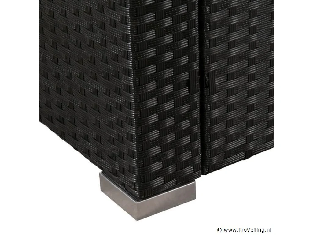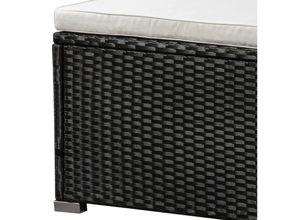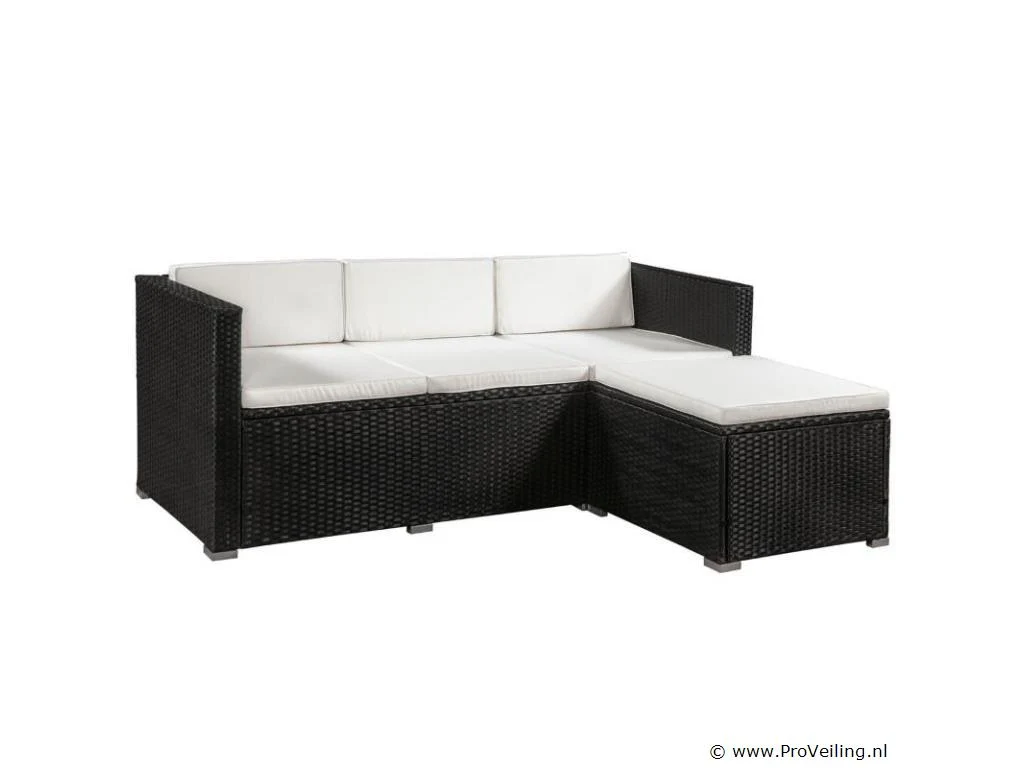 Ben je op zoek naar een comfortabele en grote loungeset voor in je tuin, terras of balkon? Met de zitgroep "Punta Cana M" verander je je buitenruimte in een stijlvolle plek om te ontspannen en je goed te voelen. Gezellige avonden met familie, vrienden of buren worden een geweldige belevenis in de buitenlucht. De unieke rotan-look in zwart met beige kussens geeft je nieuwe loungemeubel een moderne charme. Creëer je eigen oase van welzijn om te ontspannen en samen te zitten. Technische specificaties: Materiaal: Weefsel: vezels van polyrotan Onderstel: staal Tafelblad: glas Hoezen: schuim, polyester Kleur: Vlecht: zwart Tafelblad: helder Kussenslopen: gebroken wit Afmetingen (ongeveer): Tafel: 61 × 61 × 37 cm (L x B x H) Bank: 178 × 69 × 65 cm (L x B x H) Kruk: 61 × 61 × 37 cm (L x B x H) Dikte zitkussen: 5 cm Dikte glasplaat: 0,5 cm Breedte rugkussen: 54 cm Zitkruk: 60 × 60 cm Leveringsomvang: 1x tafel 1 x Bank 1 x kruk 4 x zitkussens 3 x rugkussens 1 x montagehandleiding
