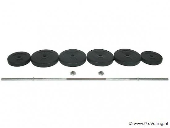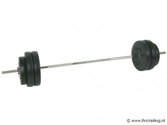 Trainen met een halterstang is de ideale manier om een strak en gezond lichaam te krijgen. Er zijn verschillende gewicht schijven om mee te trainen. De 24 centimeter lange handvatten zijn geribbeld, die voorkomt uitglijden als gevolg van zweet op de handen. De gewichten hebben een beschermingslaag dat je vloer beschermt bij het plaatsen van de halter op de grond na je training. De verschillende gewicht schijven worden vastgezet met een schroefdop. Details: Totaal gewicht incl. stang 60 kg Anti-slip handgrepen Gewichten hebben een kunstof behuizing Schroefdop sluiting Specificaties: Afmetingen stang (L x Ø): ca. 165 x 2,5 cm Gewicht ca. 6,5 kg Afmetingen handgreep (L): ca. 24 cm Halterschijven 2 kg (Ø x H): ca. 21 x 4,2 cm Halterschijven 5 kg (Ø x H): ca. 26 x4,8 cm Halterschijven 10 kg (Ø x H): ca. 31 x 5,4 cm Levertijd: 2 tot 5 werkdagen