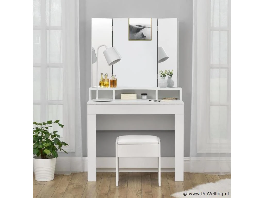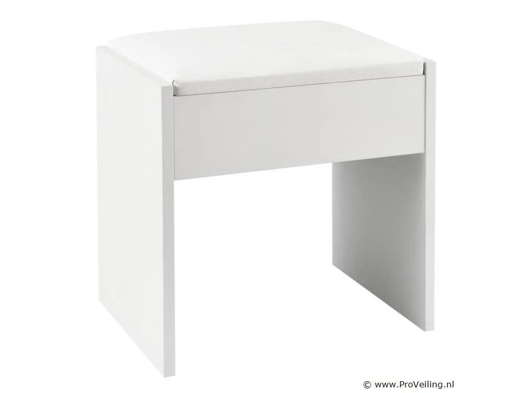 De comfortabele make-uptafelkruk Melly met zitkussen is het perfecte accessoire voor je make-uptafel. In het nobele en eenvoudige ontwerp verbetert de kruk elke kaptafel visueel. De kruk met imitatieleren bekleding geeft je genoeg comfort voor je dagelijkse make-up routine. Je kunt hem ook gebruiken als zitje in de woonkamer, slaapkamer of kinderkamer. De make-up kruk is gemaakt van wit gelakt MDF-hout en is uiterst onderhoudsvriendelijk. Het wordt niet voor niets beschouwd als een speciaal cadeau voor meisjes en vrouwen voor verjaardagen of Kerstmis. Technische specificaties: Materiaal lijst: MDF-hout Materiaal bekleding: polyurethaanleer Kleur kruk: wit Maximale belasting: 80 kg Afmetingen (ongeveer): Breedte: 40 cm Lengte: 30 cm Hoogte: 43cm Leveringsomvang: 1 x kruk 4 x standaard 1 x montageset 1 x Instructie