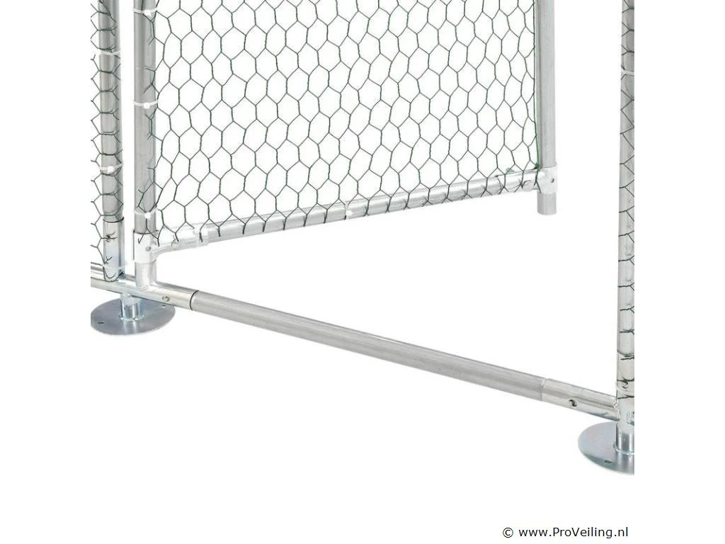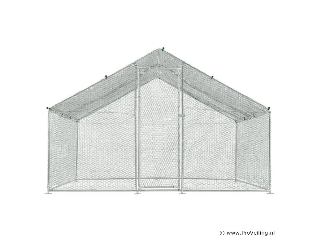 Ben je zelfvoorzienend of heb je een uitlaatklep nodig voor de trend “houd de kippen in de tuin”? Het buitenverblijf HLS25T van 3x2x2 m is perfect om dieren op een soortspecifieke manier buiten te houden. In de gegalvaniseerde box voor kippen, konijnen en ganzen hebben kleine dieren op 6 m² genoeg buitenruimte. Planten zijn hier ook beschermd en droog. Je bevestigt het waterdichte zeildoek flexibel aan het frame. Door de gegalvaniseerde buizen en het PVC-gecoate hek heb je een stabiel en duurzaam kippenhok dat je eenvoudig in elkaar zet door middel van het plug-and-click systeem. Technische specificaties: Materiaal draad: galvanisch verzinkt ijzer, PVC gecoat, zeshoekig (vorm) Materiaal palen: gegalvaniseerd ijzer Materiaal dekzeil: PE (waterdicht, regenbescherming), materiaal accessoires: kunststof Boxkleur: zilver, grijs (frame), wit (zeildoek), groen (net) Geschikt voor: kleine dieren zoals kippen, konijnen, ganzen, eenden & planten (bijv. gewassen, bloemen) Bijzonderheden: Toegankelijk via hoge deur, met poortgrendel, zeildoek Boxvorm: Vierkant Plaats van gebruik: buiten Buitenverblijf 2x3 m: datablad om te downloaden Afmetingen (ongeveer): Totale afmetingen van de volière: 300 x 200 x 200 cm (BxLxH) Oppervlakte buitenruimte: 6m² Hoogte dak: 115 - 200 cm Deur: 65 x 174 cm (BxH) Buisdiameter: 2,5 cm, dikte: 1 mm Rasterhek: 3 x 4 cm (BxH), dikte: 0,5 mm Dekzeil: 340 x 188 cm (BxH) Rol kippennet: 1 x 24m Leveringsomvang: 1 x Kippenren 1 x rol kippenhek 1 x dakzeil 1 x deur met vergrendeling 1 x Instructie Let op: Alleen geschikt voor kleine dieren zoals kippen, konijnen, ganzen, eenden & planten. Vraag: Kan ik meerdere producten aan elkaar koppelen? nee Kan de deur rechts of links worden geopend? We raden aan om ze links te monteren, rechts kan ook. De box is afsluitbaar met een grendel. Er is geen slot met sleutel, het wordt met de hand geopend en gesloten. Het PE dekzeil (waterdicht) heeft geen zonwerende functie, maar dient als regenwering. Je bevestigt het dekzeil flexibel aan de palen door middel van de elastische banden.