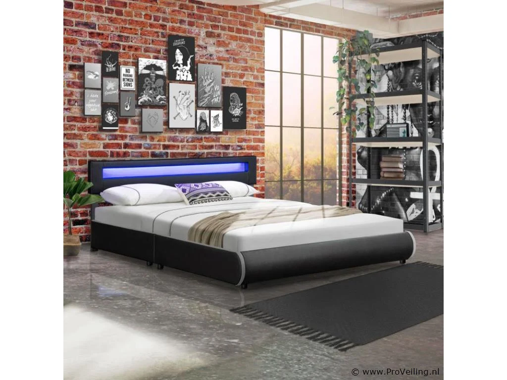 Slaapcomfort is… wakker worden en ontdekken dat het geen droom was. Want het gestoffeerde bed Sevilla (180x200 cm, zwart) is echt heerlijk comfortabel en robuust tegelijk. De stabiele lattenbodem biedt de ideale basis voor een gezonde en rustgevende slaap. Dankzij de gecapitonneerde rugleuning kun je ook ontspannen tijdens het lezen of tv kijken. Het biedt ook ruimte voor chique LED-verlichting die je slaapkamer baadt in sfeervolle kleuren. De moderne uitrusting en het stijlvolle design overtuigen zowel jonge volwassenen als koppels. Het ruime tweepersoonsbed geeft uw slaap- of logeerkamer een nobele flair. Technische specificaties: Producttype: bedframe De kleur zwart Stijl: Modern Materiaal frame: MDF hout, metaal Materiaal bekleding: kunstleer (84% PVC, 16% polyester) Verlichting: LED-strip met afstandsbediening Lichtkleur: 16 verschillende kleuren Vermogen: 18,7W Lichtstroom: 306 lm Kleurtemperatuur: 2000 - 10000K Afmetingen (ongeveer): Afmetingen: 189,5 x 217 cm Ligoppervlak: 180 × 200 cm Hoogte hoofdeinde: 70 - 85 cm Dikte hoofdeinde: 7,5 cm Framedikte zijkanten: 4 cm Hoogte voeteneinde: 27,5 cm Framedikte voeteinde: 8,5 cm Voeten: 4 cm Opmerkingen over de lichtbron: Het product bevat LED-verlichting. De meegeleverde LED-verlichting is alleen bedoeld voor scène-/accentverlichting en is niet geschikt voor andere toepassingen. De meegeleverde lampen zijn niet uitwisselbaar, maar uitneembaar. De meegeleverde led-verlichting is via een IR-afstandsbediening in te stellen en te dimmen. De meegeleverde LED-verlichting moet worden verwijderd voor verwijdering in overeenstemming met de richtlijn voor afgedankte elektrische en elektronische apparatuur en ElektroG en afzonderlijk worden afgevoerd. Leveringsomvang: 1 x gestoffeerd bed 1 x lattenbodem 1 x afstandsbediening 1 x Instructie Let op: Het matras is niet bij de levering inbegrepen. U ontvangt het product goed verpakt als bouwpakket voor zelfmontage per pakketdienst. Dit artikel bestaat uit 2 dozen, het kan logistiek voorkomen dat het in meerdere dagen geleverd wordt. Onderdelen kunnen zich in het hoofdbord bevinden.