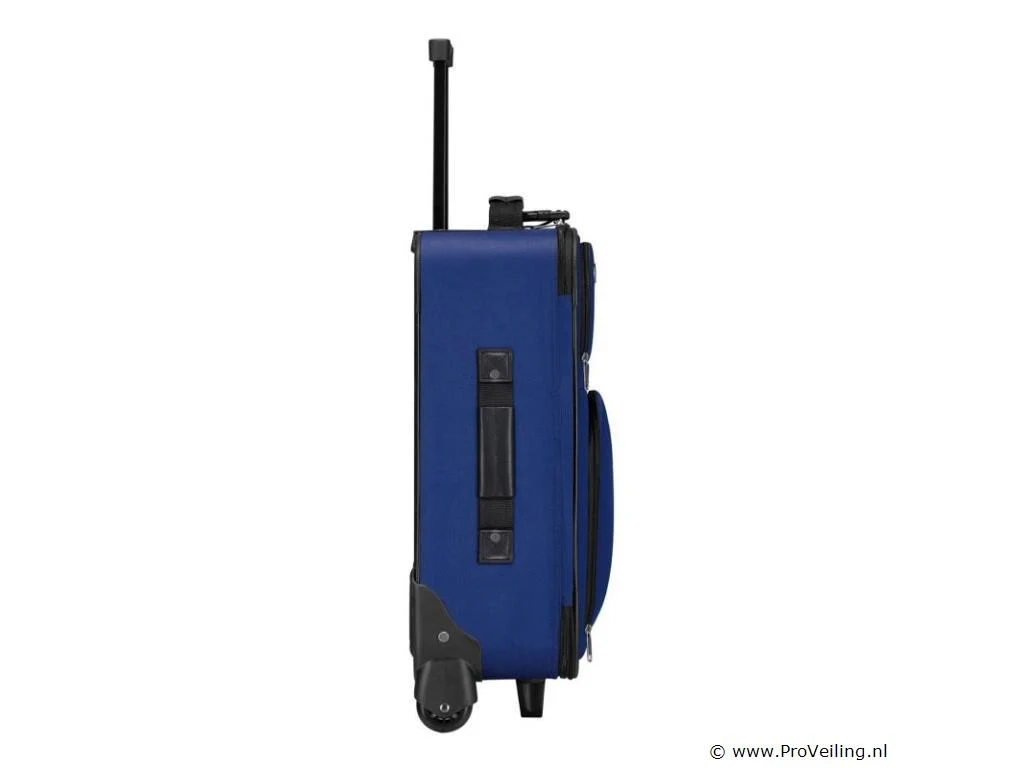 De 5-delige trolleykofferset Athens in de kleur blauw is de ideale basisuitrusting voor elke gelegenheid. Of het nu gaat om vakantie, stedentrip, weekendtrip of zakenreis, de set biedt de juiste koffer voor uw eisen. Naast 2 trolleys van verschillende afmetingen met lichtlopende wielen en aluminium telescopische stangen, bevat de set een praktische schoudertas voor handbagage en twee compacte en stijlvolle make-uptassen. De tassen en koffers zijn gemaakt van robuust polyester en hebben een waterafstotende coating. Voor meer veiligheid kunnen de hoofdvakken van de trolleys worden afgesloten (hangslot niet inbegrepen). Als je de set niet gebruikt, kun je de set in elkaar opbergen om ruimte te besparen en veilig op te bergen. Technische specificaties: Materiaal: aluminium, stof (Oxford polyester stof 600D) Materiaal wielen: rubber Kleur blauw Maximale belasting trolley L: 30 kg Maximale belasting trolley M: 15 kg Afmetingen (ongeveer): Trolley L buitenafmetingen: 64 x 44 x 21 cm Trolley L Inhoud: 60 liter Trolley M buitenafmetingen: 52 x 37 x 18 cm Trolley M Inhoud: 34 liter Buitenafmetingen schoudertas: 38 x 28 x 15 cm Capaciteit schoudertas: 16 liter Buitenafmetingen toilettas: 24 x 13 x 10 cm Capaciteit make-uptas: 3 liter Leveringsomvang: 1 × trolley maat L 1 × trolley maat M 1 × schoudertas 2 x make-uptas 1 × Instructie Kijk voor bestelling eerst goed naar de afmetingen!