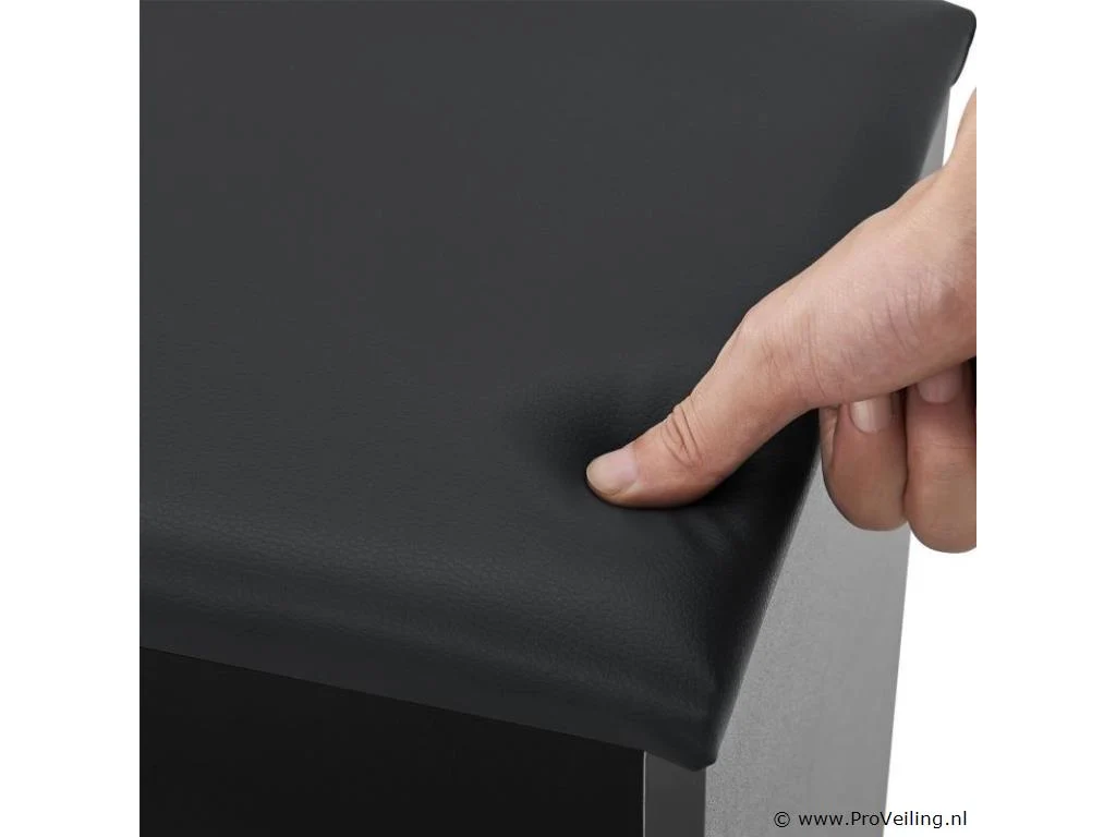 Het kleine schoenenrek blijkt een echt wonder van opbergruimte te zijn. De twee schoenenrekken bieden gemakkelijk plaats aan maximaal 6 paar schoenen. Bovendien is er een ruim vak verborgen onder het gevoerde deksel, waarin kleine voorwerpen zoals schoenlepels of schoenborstels een nieuw, onopvallend thuis vinden - binnen handbereik en netjes opgeborgen. De zachte bekleding doet tevens dienst als comfortabele zitplaats. Met een draagvermogen tot 150 kg zit je hier comfortabel om je schoenen aan en uit te trekken, schoon te maken en dergelijke. De plank is gemaakt van lichte en robuuste houten panelen met een slijtvaste melamine coating. Technische specificaties: Lichaamsmateriaal: spaanplaat E1 (melaminecoating) Materiaal achterwand: MDF-plaat Materiaal zitkussen: schuim, kunstleer (polyurethaan) Carrosseriekleur: grijs Kleur bekleding: zwart Maximaal draagvermogen: 150 kg Afwerking: Mat Afmetingen (ongeveer): Totale afmetingen (LxBxH): 60x30x44 cm Afmeting 1 vak: 57x27x8 cm Afmeting 2 vakken: 57x27x14 cm Paddikte: 4 cm Materiaaldikte: 15 mm Dikte achterwand: 3 mm Leveringsomvang: 1 × schoenenrek 1 × montage-instructies