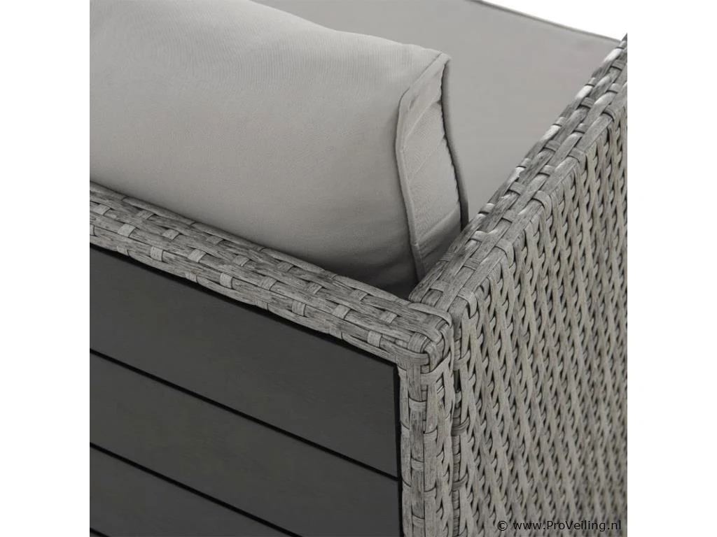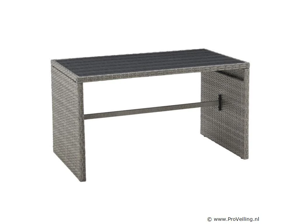 De 2in1 polyrotan Relax tuinmeubel Jamaica in grijs bestaat uit een tafel, bank en krukken. Gebruik de set als comfortabele bank of als zithoek met tafel. De bank doet ook dienst als bank en tafel als je de tafel 90 graden draait. De multifunctionele zitgroep voor 2 tot 4 personen is vooral geschikt waar weinig ruimte is, zoals voor een klein balkon, tuin of op de camping. De moderne lounge is gemaakt van polyrotan en is weerbestendig, onderhoudsvriendelijk en duurzaam. Technische specificaties: Materiaal gaas / frame: polyrotan / staal Materiaal hoes: 180 g/m² polyester Materiaal tafelblad: kunststof hout Kleur tuinlounge: Grijs (grijs gemêleerd) Kleur kussen: grijs (lichtgrijs) Aantal zitplaatsen: 2 tot 4 Hoezen wasbaar: ja Draagvermogen bank: 200 kg Draagvermogen per kruk: 100 kg Afmetingen (ongeveer): Tafel (LxBxH): 110x60x61 cm Bank (BxDxH): 102x57x35 Kruk (BxDxH): 40x40x35 Dikke kussens: 6 cm Leveringsomvang: 1x tafel 1 x Bank 2 x krukken 5 x kussens 1 x Instructie