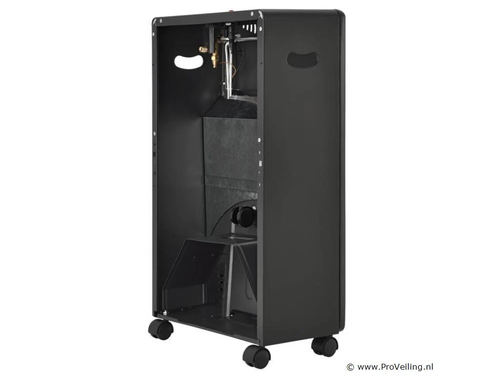 Technische specificaties: Technische aanduiding: LQ-H002A, apparaatcategorie: I3B/P(50) Materiaal: metaal (staal), gepoedercoat, verchroomd stalen deksel Materiaalsamenstelling: 90% staal, 10% infrarood verwarming, 3 keramische platen verwarming Kleur: zwart Vermogen: 1,5 kW | 2,75 kW | 4,2 kW (verwarmingsniveau 1 tot 3) Ontsteking: piëzo-elektrisch met een druk op de knop Gastype: butaan, propaan, mengsels; Type gasfles: 5 kg, 11 kg gasdruk: 50 mbar; Gasverbruik: max. 306 g/u; Debiet gasregelaar: max. 1 kg/h Energie-efficiëntieklasse: A; Energie-efficiëntie-index: 90,8% Afmetingen (ongeveer): Afmetingen: 42 x 29 x 73 cm (BxLxH) Lengte slang: 0,8 m Wieldiameter: 4 cm Noodzakelijke afstand tot de muur aan de zijkant: min. 0,2 m Noodzakelijke frontale afstand: Min. 2 m van brandbare materialen, meubels Leveringsomvang: 1 x mobiele gaskachel inclusief beschermrooster, gasfleshouder 1 x 50 mbar lagedrukregelaar 1 x Gasslang 1 × Montage-instructies