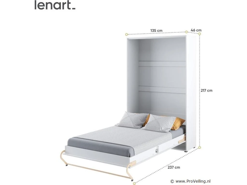 Lenart Concept Pro CP02 Kastbed, wandbed, Muurbed (120x200cm) GLANS WIT, kastklapbed, verticaal, kast met geïntegreerd klapbed, functioneel bed, NIEUW IN DE VERPAKKING. Winkelprijs 995,00 euro.