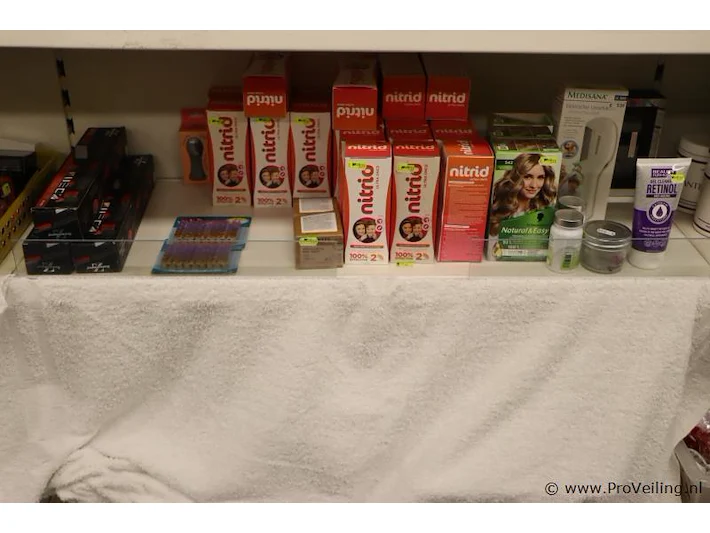 Partij persoonlijke verzorgingsproducten (inhoud 1 plank) bestaande uit o.a. tandpasta, haarverf, haarstyler & elektrisch luizenkam