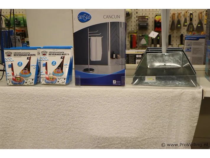 Partij diversen bestaande uit o.a. opblaasbaar bootjes, handdoekhouders & blikveger