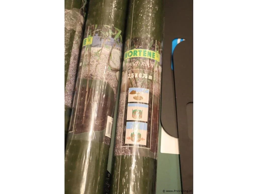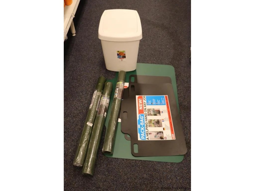 Partij diversen bestaande uit o.a. pack-bag, anti root 2,5x075m & Curver afvalbak; zie afbeeldingen.