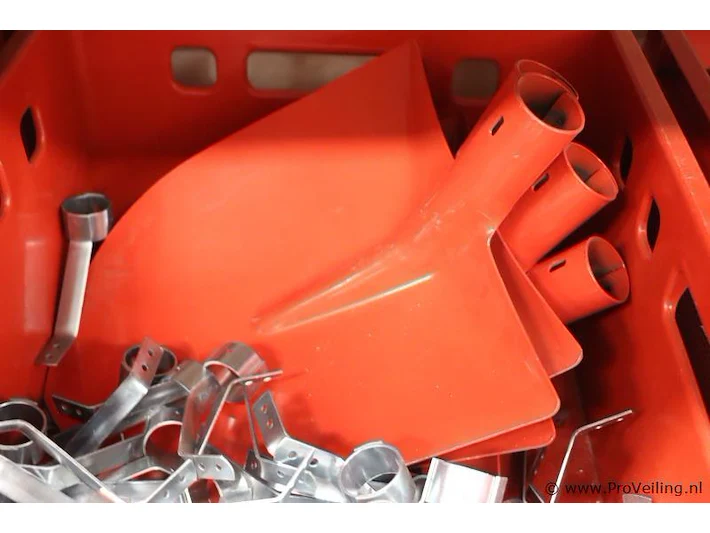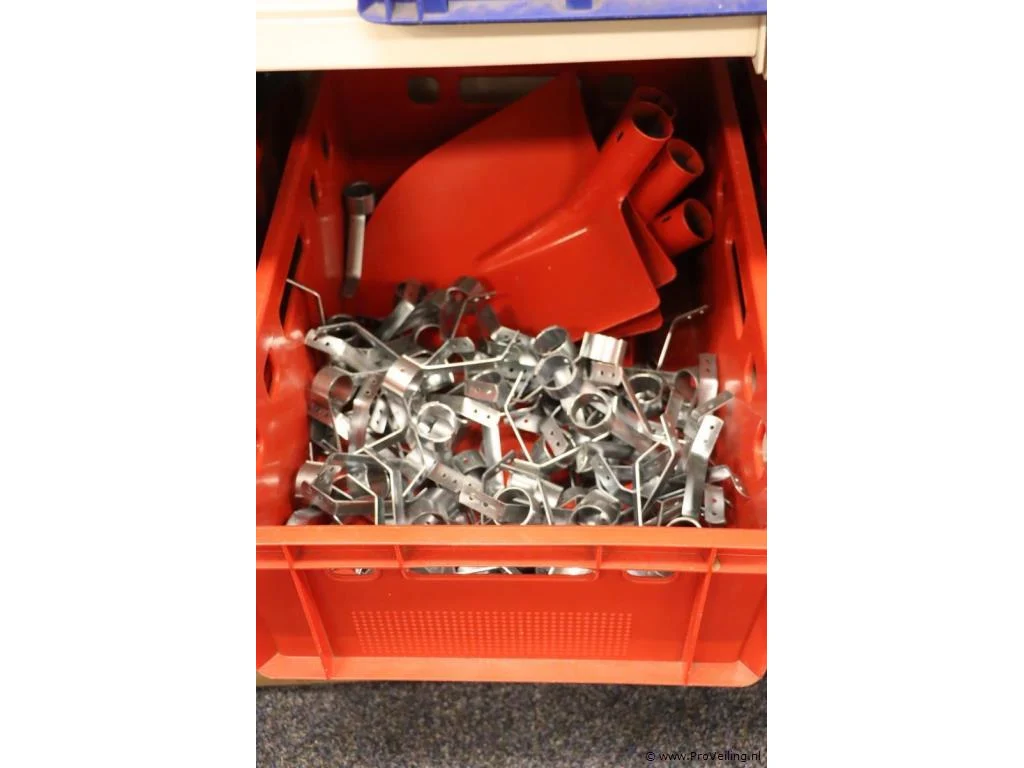 Partij schoppen, diverse kleuren & bevestigingsmaterialen; zie afbeeldingen. Excl. Rode krat.