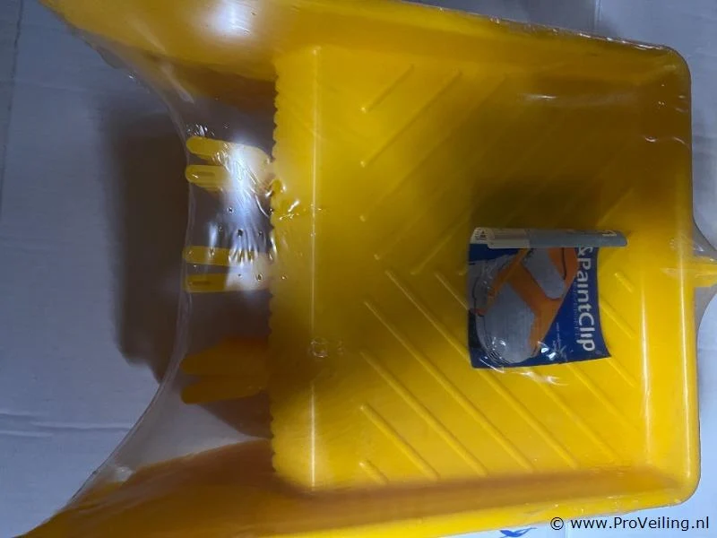 Verfbakje geel, ca. 34x25 cm; aantal ca. 90 stuks.