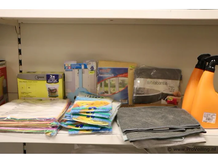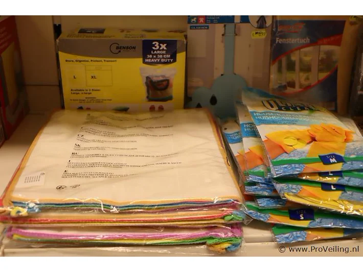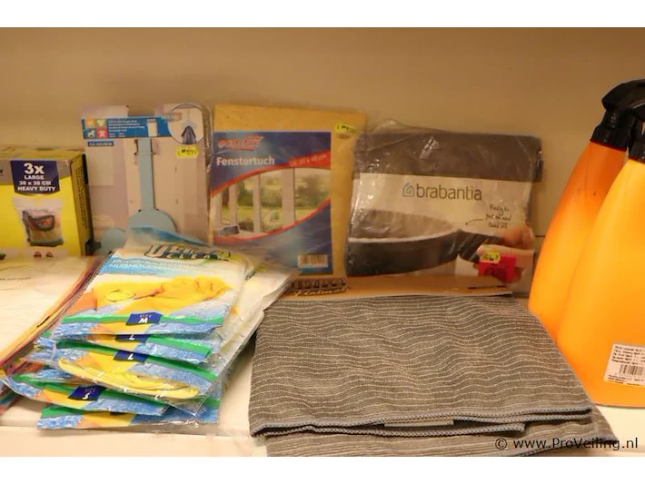 Partij schoonmaakartikelen o.a. schoonmaakdoekjes, huishoudhandschoenen & plantenspuiten; zie afbeeldingen.