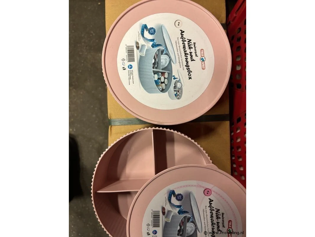 Naaigaren box, rond; aantal ca. 65 stuks.