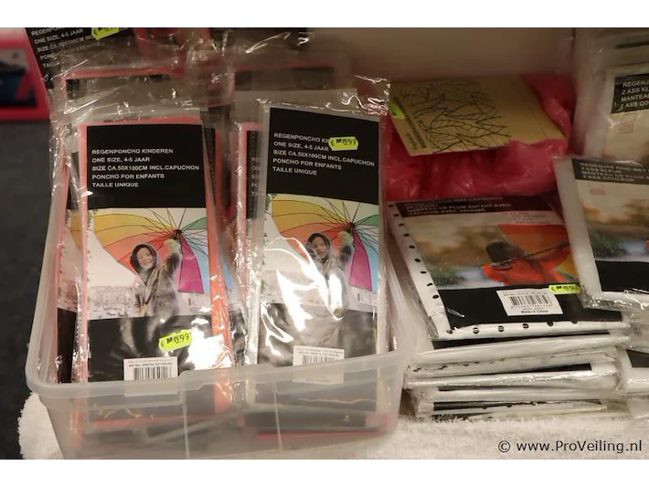 Partij diversen o.a. regenjassen, diverse kleuren & handgel