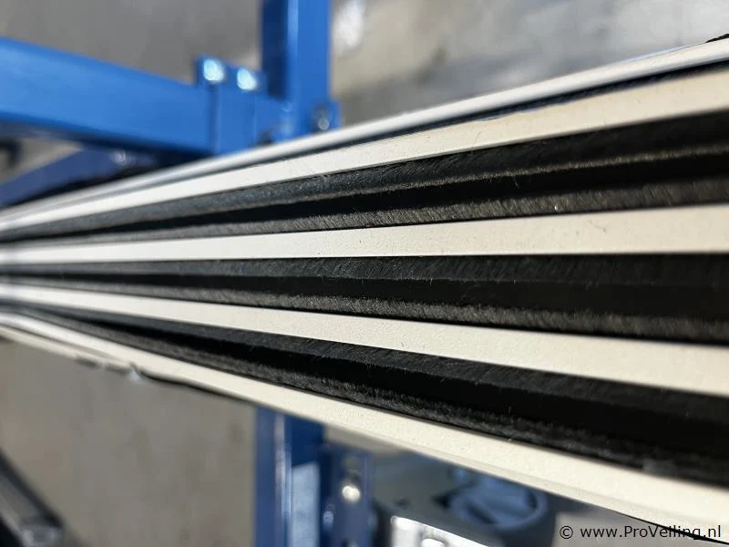 Schuifdeursysteem voor aanbouw, overkapping, veranda of tuinkamer, Compleet set met 7 stuks glasdeuren van 960 mm en boven- en onderrail, verstelbare glasprofielen, glasopvang-tochtprofielen en twee grepen 2400mm hoog ( min 2370 en max 2410 mm) breedte 6540 mm, breedte inkortbaar,( let op railset bestaat uit 2 delen) kleur Mat RAL 9005, Dit product wordt gratis thuisgeleverd ( 1 persoon moet helpen lossen)