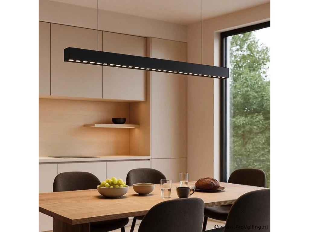2 x LED Lineaire hanglamp – Zwart – 35W – Stijlvolle en moderne lineaire hanglamp – Vermogen: 35W – Afmetingen: 1200 x 35 x 60 mm – Ingebouwde LED – Spanning: 85-265V (50/60Hz) – Materiaal: hoogwaardig aluminium – Kleur: zwart– Inclusief montageset – Ideaal voor kantoren, bedrijfsruimtes en eigentijdse interieurs.