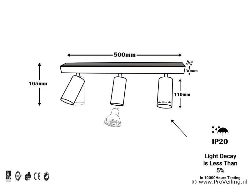8 x opbouwarmatuur GU10 – 3 draaibare spots – Zwart – Fitting: GU10 – Afmetingen: 500 x 165 mm – Richtbare spots: 350° rotatie en helling 70° – Hoogwaardig aluminium – Kleur: zwart – Spanning: 85-265V (50/60Hz) – Beschermingsgraad: IP20 – Geschikt voor een utBinnengebruik – GU10-lampen niet inbegrepen – Inclusief montageset – Ideaal voor accent-, werk- of decoratieve verlichting – Lange levensduur en premium design.