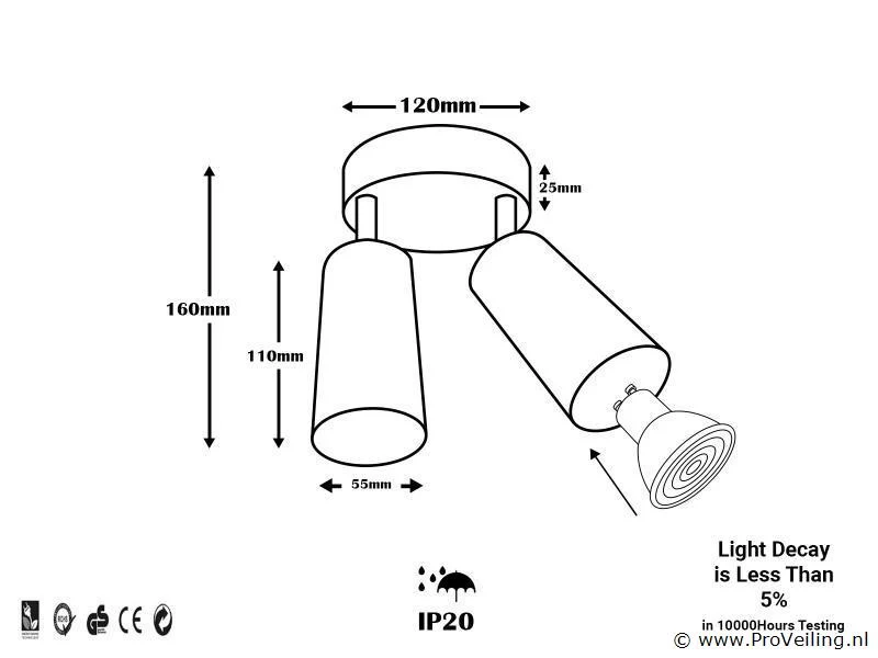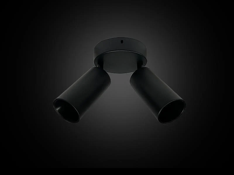 5 x Ronde plafondlamp GU10 – 2 verstelbare spots – Zwart – Fitting: GU10 – Aantal spots: 2 – Afmetingen: Ø 55 x 110 mm – Muurbeugel: Ø 120 x 25 mm – Vorm: rond – Draaibare spots: 350° rotatie en helling 70° – Materiaal: hoogwaardig aluminium- Kleur: zwart - Spanning: 85-265V (50/60Hz) - Beschermingsgraad: IP20 - Geschikt voor gebruik binnenshuis - GU10-lampen niet inbegrepen - Inclusief montageset voor eenvoudige installatie - Ideaal voor decoratieve en functionele verlichting.