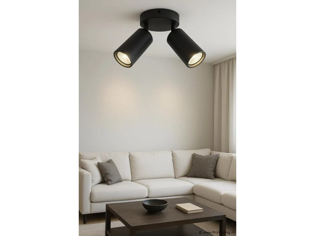10 x Ronde plafondlamp GU10 – 2 verstelbare spots – Zwart – Steun: GU10 – Aantal spots: 2 – Afmetingen: Ø 55 x 110 mm – Muurbeugel: Ø 120 x 25 mm – Vorm: rond – Draaibare spots: 350° rotatie en 70° kanteling – Materiaal: aluminiumHoge kwaliteit – Kleur: zwart – Spanning: 85-265V (50/60Hz) – Beschermingsgraad: IP20 – Geschikt voor gebruik binnenshuis – GU10 lampen niet inbegrepen – Inclusief montageset voor eenvoudige installatie – Ideaal voor decoratieve en functionele verlichting.