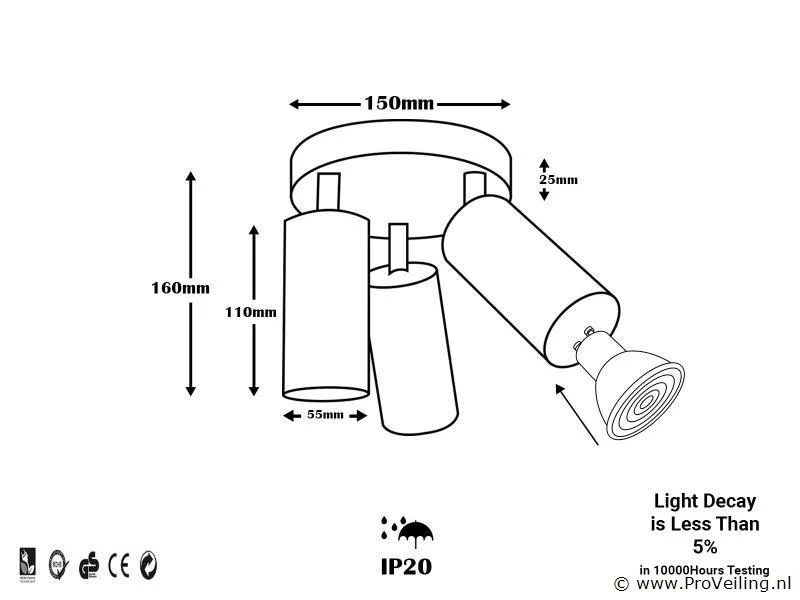 4 x Ronde opbouwarmatuur GU10 – 3 spots orientAbles – Zwart – Fitting: GU10 – Aantal spots: 3 – Afmetingen: Ø 55 x 110 mm – Muurbeugel: Ø 150 x 25 mm – Vorm: rond – Richtbare spots: 350° rotatie en 70° kanteling – Materiaal: hoogwaardig sterk aluminium – Kleur: zwart – TensiOn: 85-265V (50/60Hz) – Beschermingsgraad: IP20 – Speciaal ontworpen voor gebruik binnenshuis – GU10-lampen niet inbegrepen – Inclusief montageset voor eenvoudige installatie – Ideaal voor accent- of functionele verlichting.