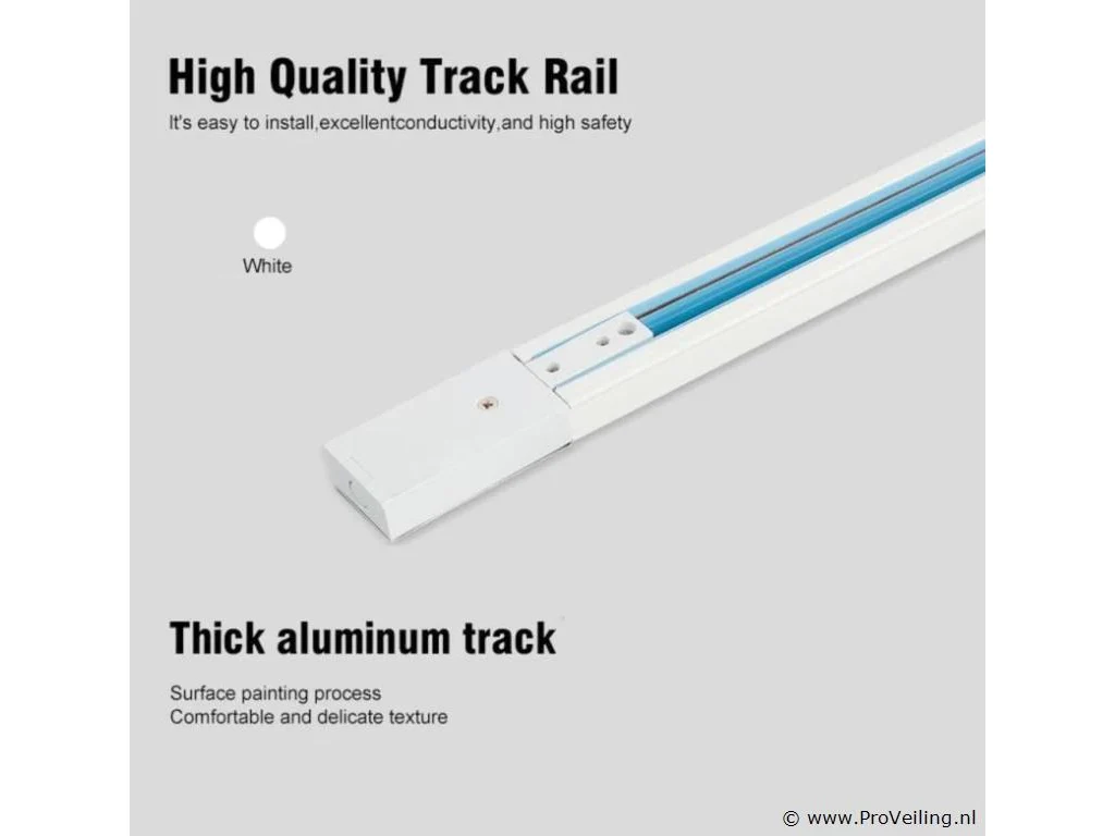 10 x Eenfasige rail – 1 meter – Wit – Hoogwaardige aluminium rail – Kleur: wit – Afmetingen: 100 x 4 x 1,6 cm – Beschermingsgraad: IP20 – Geschikt voor gebruik binnenshuis –Inclusief montageset - Ideaal voor het eenvoudig installeren en aansluiten van uw spots op rails - Past perfect in elk type interieur.