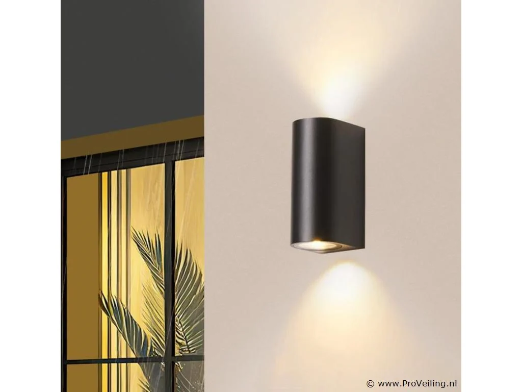 10 x GU10 dubbele stroom buitenwandlamp – Waterdicht (IP65) – PC en gehard glas – DimensiOns: 92 x 68 x 150 mm – Dop: GU10 – Lamp niet inbegrepen – Lichtstroom boven en onder – Inclusief bevestiging – Geschikt voor gebruik binnen en buiten.