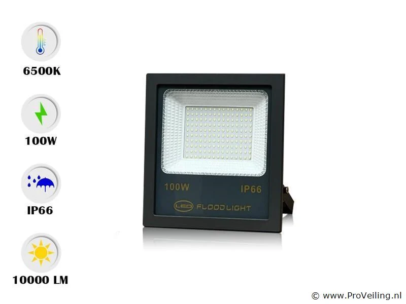 6 x schijnwerper led 100w – 6500k koud wit – ip66 waterdicht – 10.000 lm
