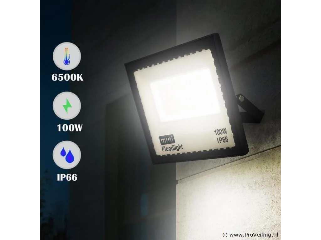 20 x LED-spot – Vermogen: 100W – Kleurtemperatuur: 6500K (Koud wit) – Lichtvermogen: 8000 lumen – Afmetingen: 260 x 210 x 35 mm – LED-type: Osram SMD – TensioN: 110-240V (50/60Hz) – Inclusief transformator – Levensduur: 30.000 uur – Beamingshoek: 120° – Beschermingsgraad: IP65 (dicht) – Geschikt voor gebruik binnen en buiten – Ideaal voor verlichting van grote oppervlakken.