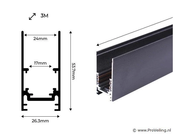 8 x 20mm 48V opbouw magnetische rail - 3 meter - Spanning: 48VDC - niet inclusief transformator - Levensduur: 30.000 uur - IP20 - Geschikt voor gebruik binnenshuisUre - IRC (AR): 90 - Ideaal voor woonruimtes, winkels en etalages, kantoren, hotels en restaurants - Afmetingen: 3000 x 26,3 x 53,7 mm - Hoogwaardig aluminium - Inclusief montagemateriaal - Inclusief lichtbron