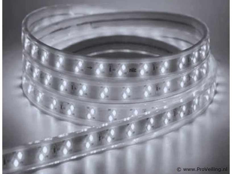 1 x LED Strip 25m - 10W/M -Koudblauw/Wit - Geschikt voor gebruik binnen en buiten - IP-waarde: IP65 ( waterdicht) - Voltage: 220-240 V (50/60 Hz) - Lengte: 25 meter - LED-type: SMD 2835 - Vermogen: 10W per meter - Levensduur: 30.000 uur - TemperatuurKleur: (Koud wit, blauw of mix van beide) - Met gratis opname - Direct klaar voor gebruik