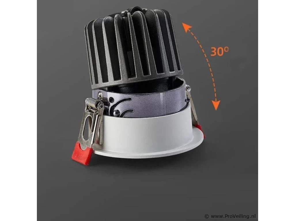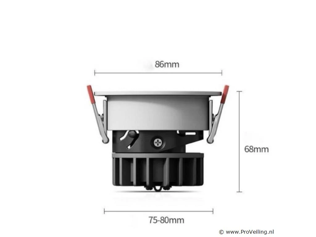 25 x inbouw LED-spot 7W – Kleur: wit/zwart – Type: COB – Vermogen: 7W – Lichtstroom: 630 lumen – Kleurtemperatuur: 6500K (koud wit) – IRC 80 – Beam hoek:40° – Afmetingen: Ø 86 x 74 mm (installatiediameter: Ø 75 mm) – Spanning: 175-265V – Materiaal: metaal – Elegante afwerking zwart/wit – Beschermingsgraad: IP20 – Geschikt voor gebruik binnenshuis – Levensduur: 25.000 uur – VerlichtingEffectief voor middelgrote gebieden
