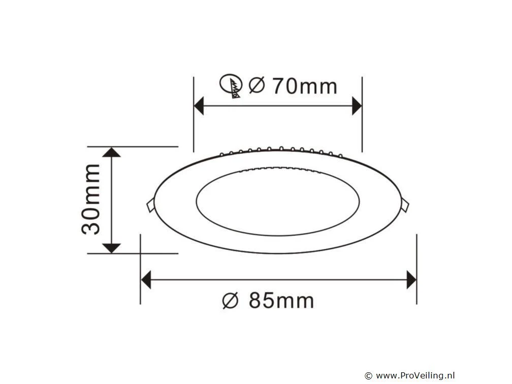 25 x LED-paneel 5W LED SMD - Inbouw - rond - 6500K - Inbouw LED-paneel - 5W - LED-type: SMD - Vorm: rond - Kleurtemperatuur: 6.500 K (koud wit) - Lichtvermogen: 400 lumen - Spanning: 220-240 V - Beschermingsgraad: IP20 - Levensduur: 30.000 uur - Inclusief stuurprogramma - Afmetingen: 85 mm x 20 mm - Montagediameter: 70 mm - Beamhoek: 120° - Geschikt voor gebruik binnenshuis