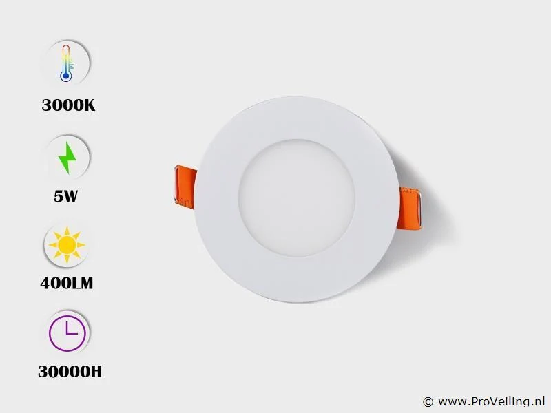 25 x led-paneel – rond inbouw – 5w – 3000k – warm wit