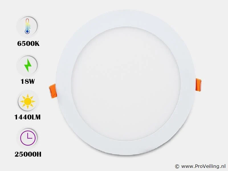 20 x led-paneel – inbouw rond – 18w – 6500k – koud wit