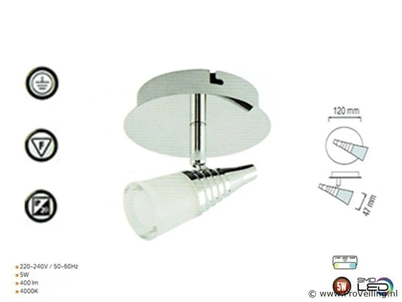 6 x LED plafondspots model DI02 – Vermogen 5W max. – Temperatuur dE kleur 4000K (neutraal wit) – Lichtstroom: 325 lumen – Afmetingen: 120 x 50 mm – Kleur: Zilver – Spanning: 220-240V (50/60 Hz) – Bescherming: IP20 – Lange levensduur – Inclusief lampen – Ideaal voor binneninstallatie: woonkamers, kantoren, winkels of gangen.