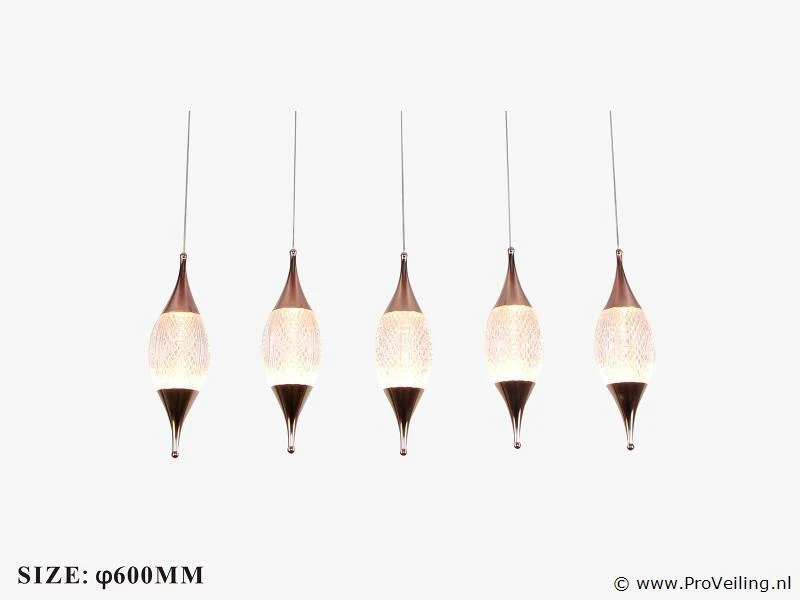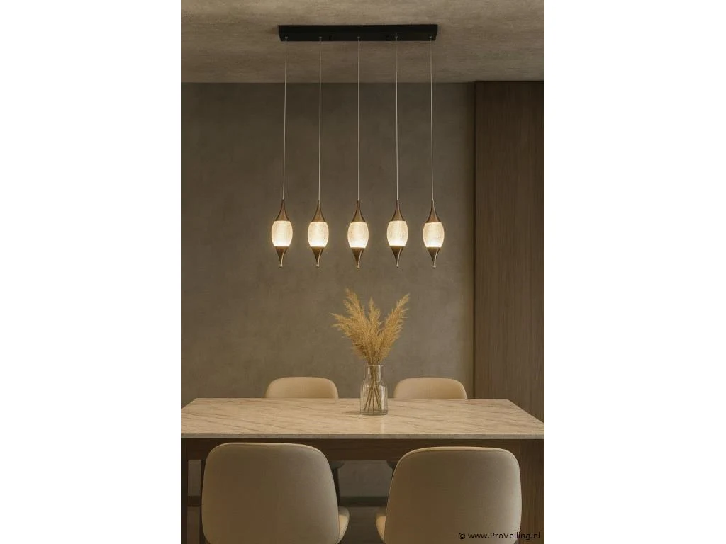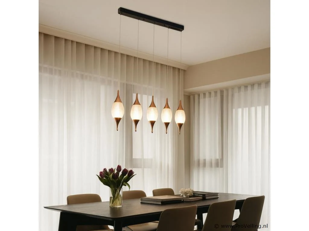 LED hanglamp model B040/5 – Kleurtemperatuur 3000K (warm wit) – BreedteA: 600 mm – In hoogte verstelbaar – Lichtbron: geïntegreerde LED-strip – Voltage: 220-240V (50/60 Hz) – Inclusief montageset – Perfect geschikt voor moderne binnenverlichting: eetkamer, woonkamer, keuken of kantoor – 3 jaar garantie.